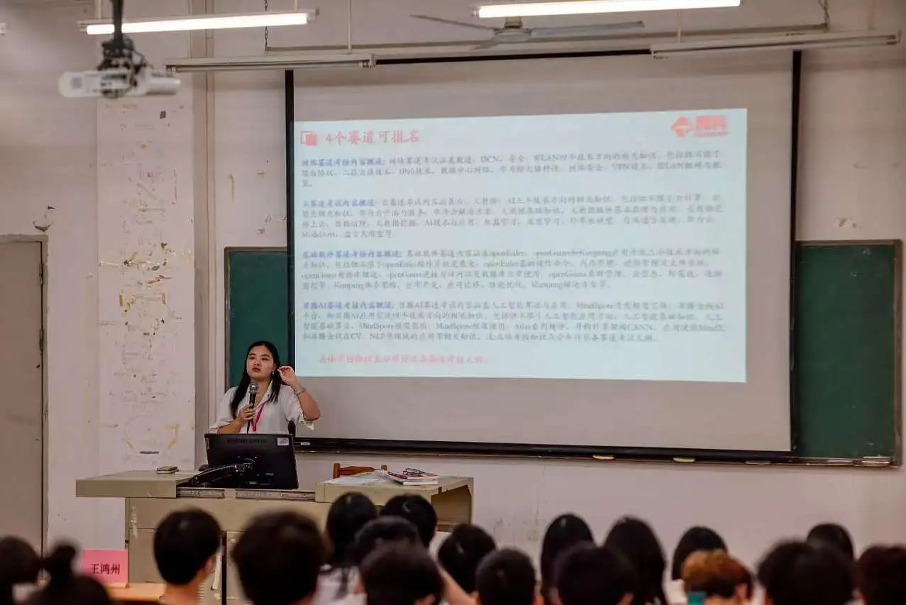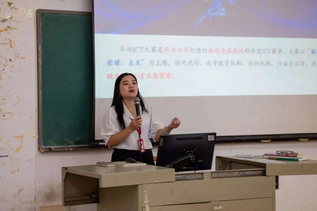 她提到,华为ICT大赛是华为公司面向全球大学生打造的年度ICT赛事,旨在为全球大学生提供一个展示才华、交流学习的平台。大赛涵盖了网络、云、计算等多个技术方向,要求参赛选手具备扎实的理论基础和丰富的实践经验。通过参与大赛,同学们不仅可以锻炼自己的实践能力和创新精神,还可以为未来的职业生涯奠定坚实的基础。