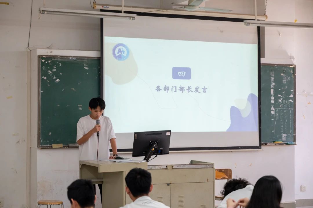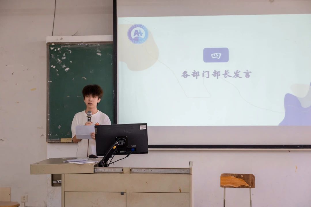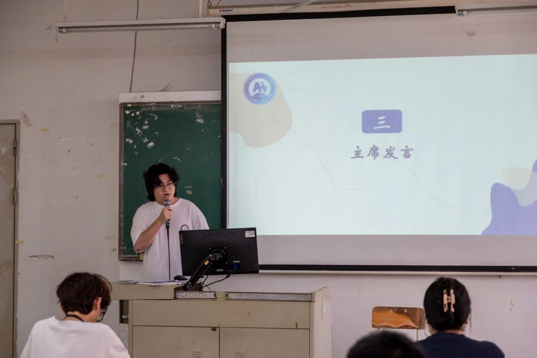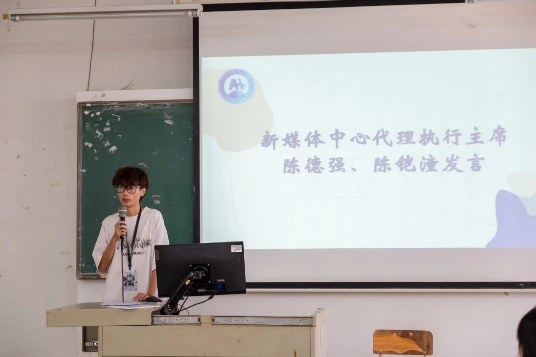 代理主席陈德强首先为大家总结了过去一年的工作,他表示,从校园宣传到微信公众号、视频号的运营,再到摄影摄像等各项工作,我们都倾注了极大的热情与努力。同时,他对所有新干事表达诚挚的鼓励和厚望。鼓励大家积极学习和提升自己,不断追求卓越。