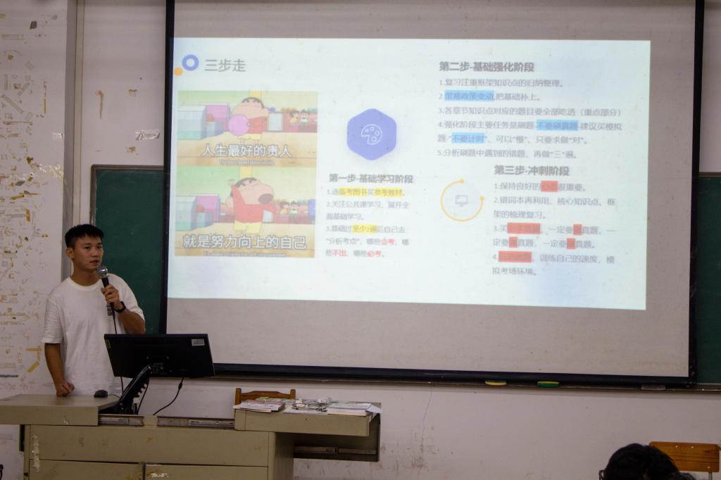 最后,凌东成向同学们介绍了自己复习的整体安排,包括复习计划、资料搜集以及整理复习提纲等备考技巧。在谈到自己心路历程时,他鼓励大家相信自己,令在场的同学感悟颇深。