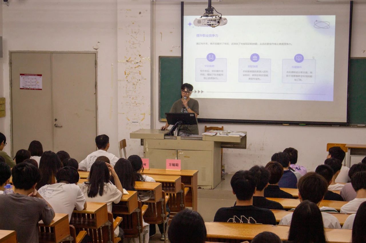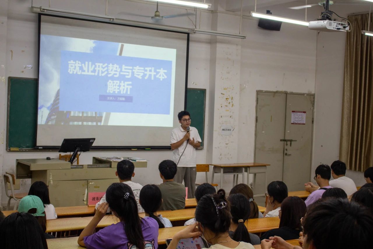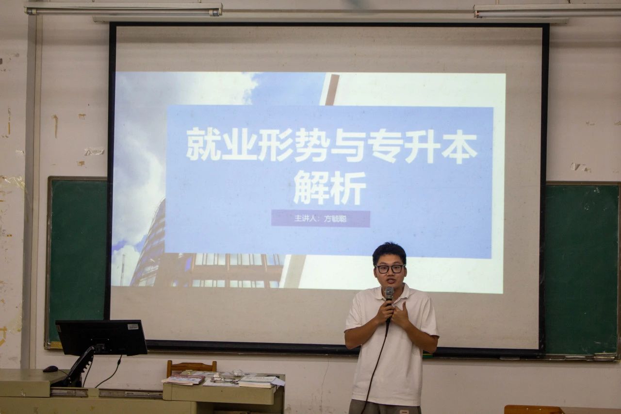 为了帮助我院学子深入了解专升本考试,提前做好学习规划,科学备考。人工智能与数据学院于2024年10月21日19:00在博学楼b101开展专升本经验交流会。本次会议由魏锴锴主持,方毓聪、黄崇柯、凌东成主讲。