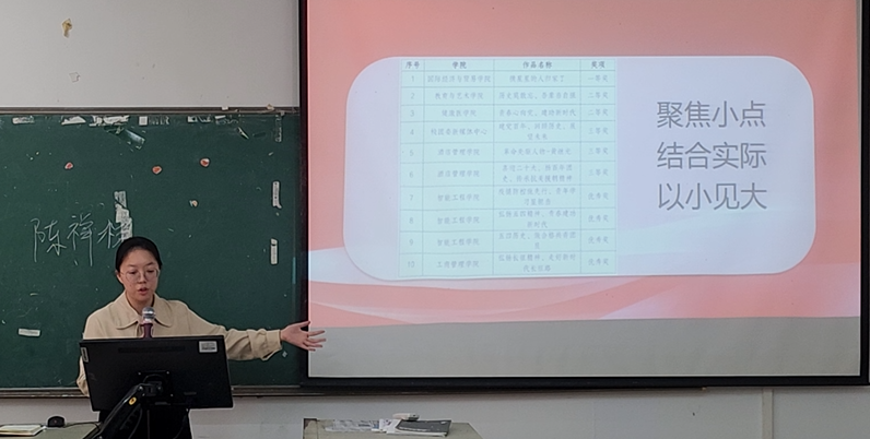 在团队展示结束后,指导老师依据专业标准和“五大提升”行动工作指引进行了深入点评。老师对同学们的努力和创意给予了充分肯定,同时也针对作品的内容深度、表现形式、团队协作等方面提出了建设性的意见和建议。老师的点评不仅为同学们指明了改进的方向,也让大家更加深刻地理解了“五大提升”行动的重要意义。