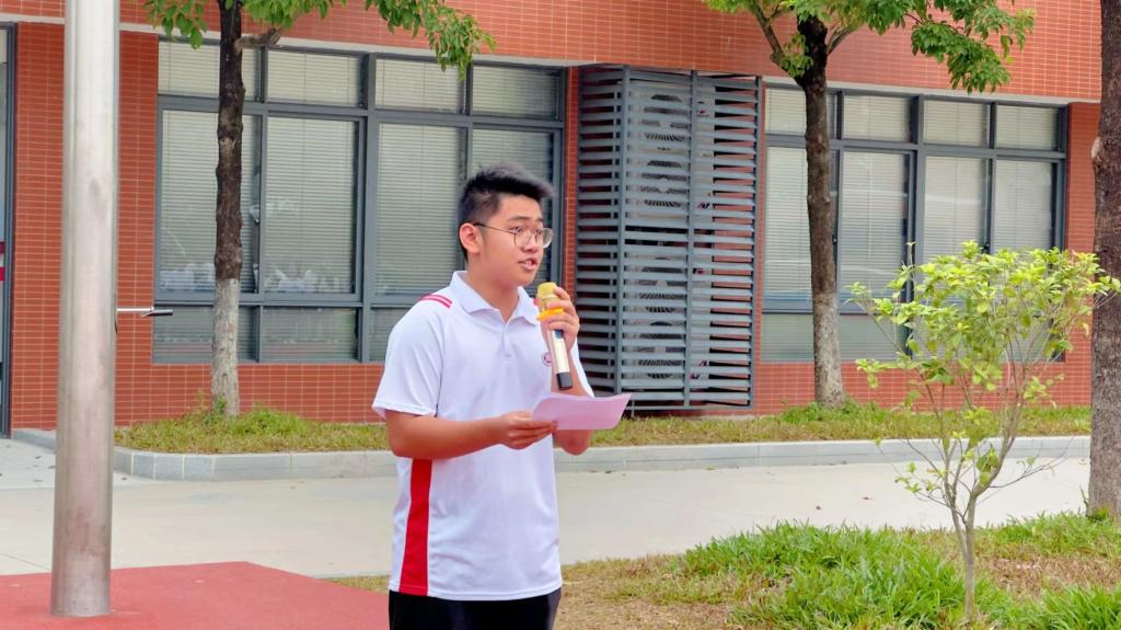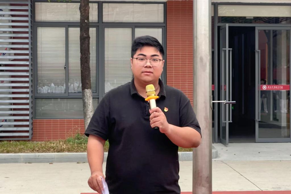 由教师代表陈浩华老师进行发言,他向同学们阐述国旗见证了中华民族从苦难走向辉煌,从而激励全体师生奋勇向前,铭记历史,珍惜当下。他表示,同学们作为人工智能与数据学院的一份子,肩负着特殊的使命,在这个科技飞速发展的时代,更要像飘扬的红旗一样引领着未来的方向。在国旗之下,个人的理想与国家命运紧密相连,无论前方有多少挑战,我们都要向着美好的未来,奋勇前行。