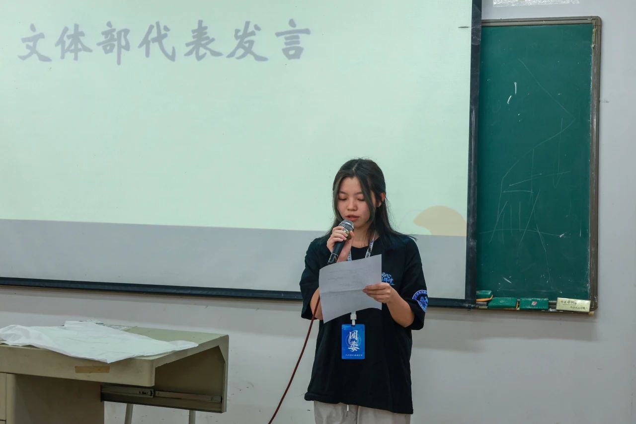 文体部部门负责人关茹静首先汇报了10月份文体部的工作总结:在10月8日,参加宿舍走访活动;10月10-11日,新老生见面会的彩排;10月12日,新老生见面会主持与演出;10月14日,参加无偿献血知识讲座;10月16日,参与教学楼教室清扫及开展部门例会;10月19日,开展荔湖公园护绿志愿者活动;10月21和23日,参与新生杯篮球赛工作人员;10月24日,宿舍走访活动;10月26日,参与敬老院志愿活动;10月29日,参加讲座和校运会选拔工作人员。