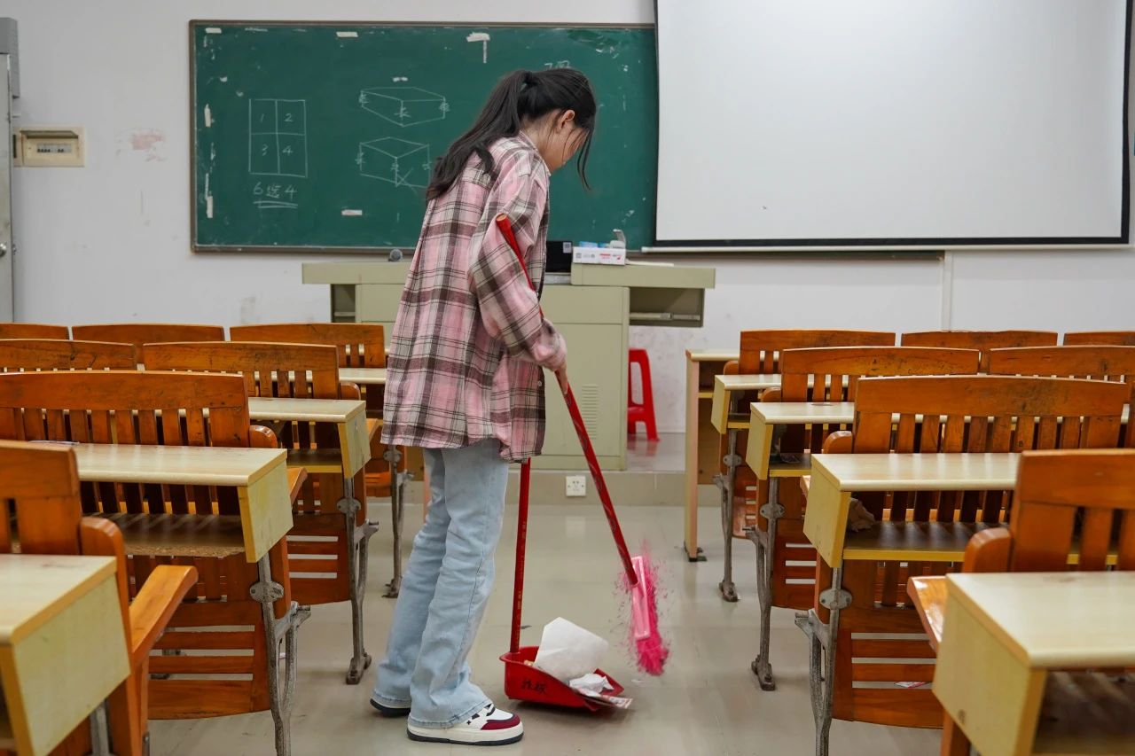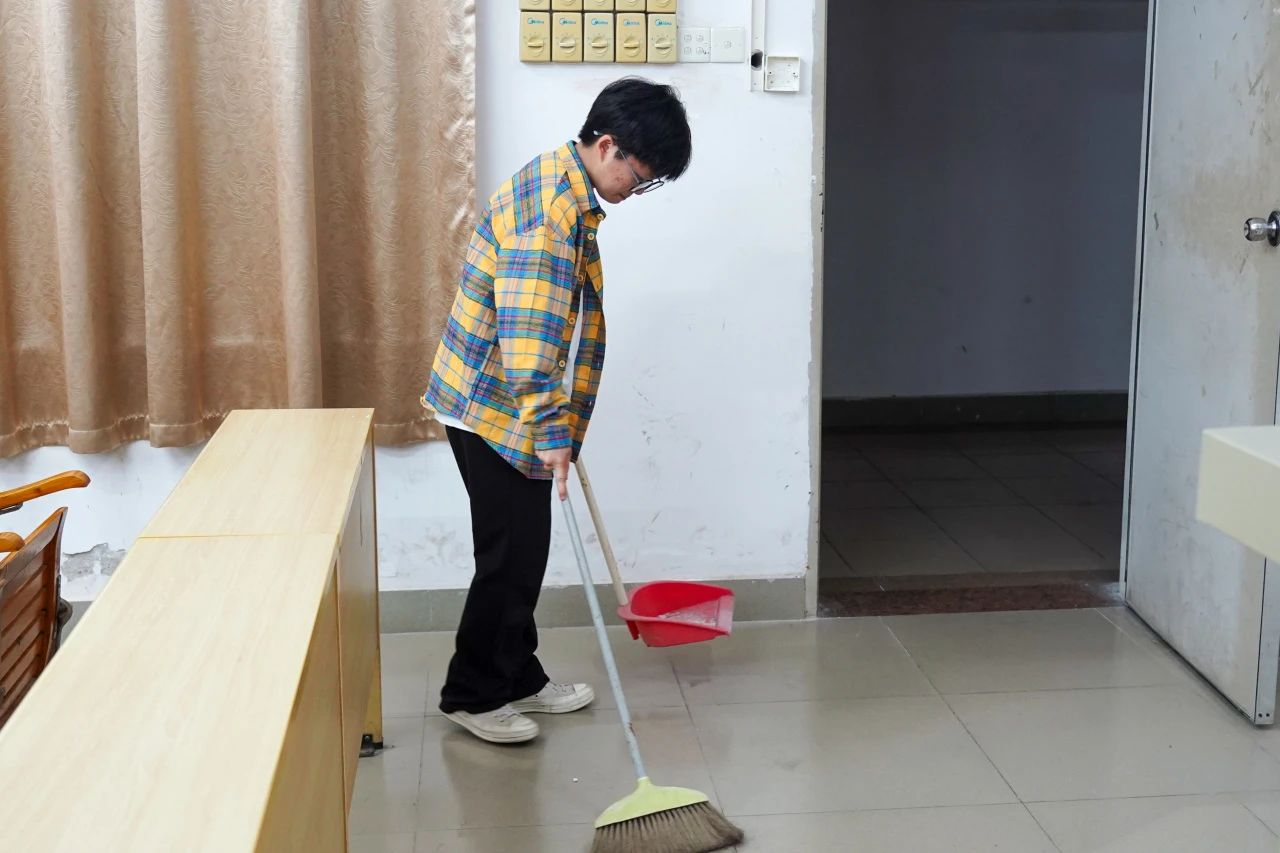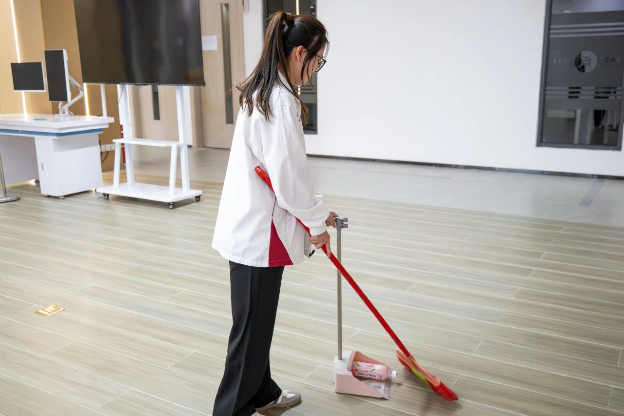 活动现场,志愿者分成多个小组,在组长的组织安排下,校园打扫志愿活动顺利开展。志愿者热心、细致的打扫校园里的每一个角落。为同学们提供一个良好的学习环境。