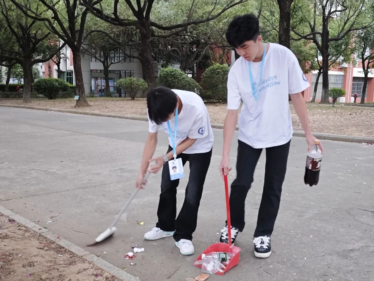 活动当天,志愿者们化身为了一个个环保小卫士,手持清扫工具、提着垃圾桶,俯身将那些被随意丢弃的纸屑、包装袋和塑料瓶等,都一一捡起。在志愿者们的共同努力下,草坪和校道很快就恢复了整洁。