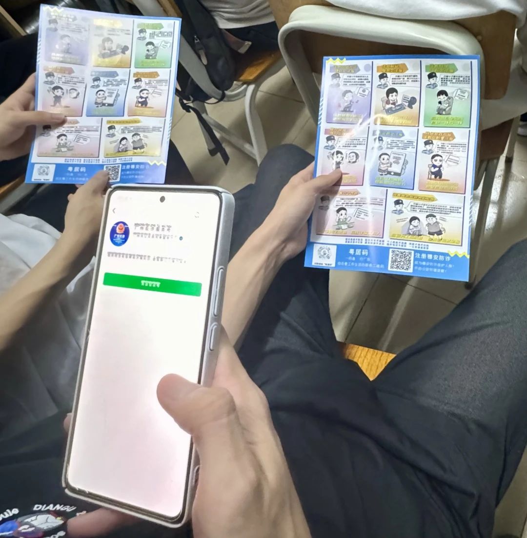 此外,小组成员还指导同学们正确使用反诈APP,通过科技反诈的力量,不仅增强了同学们的自我保护能力,还为构建安全和谐校园环境贡献了力量。