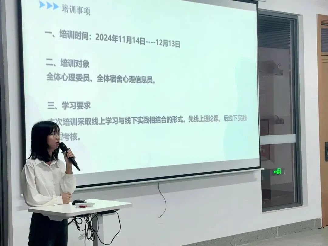 会议伊始,刘文丽老师先介绍了全体心理委员以及宿舍心理信息员培训事项: