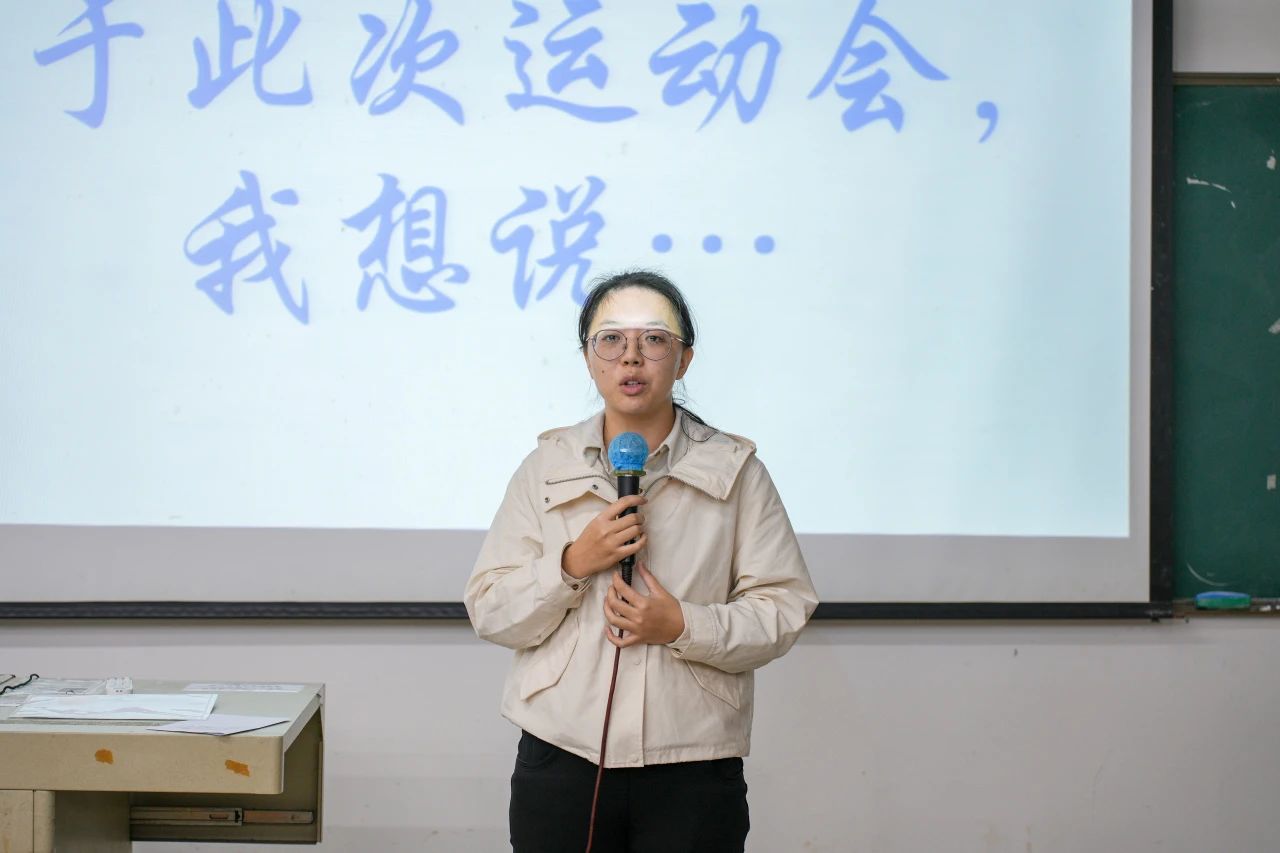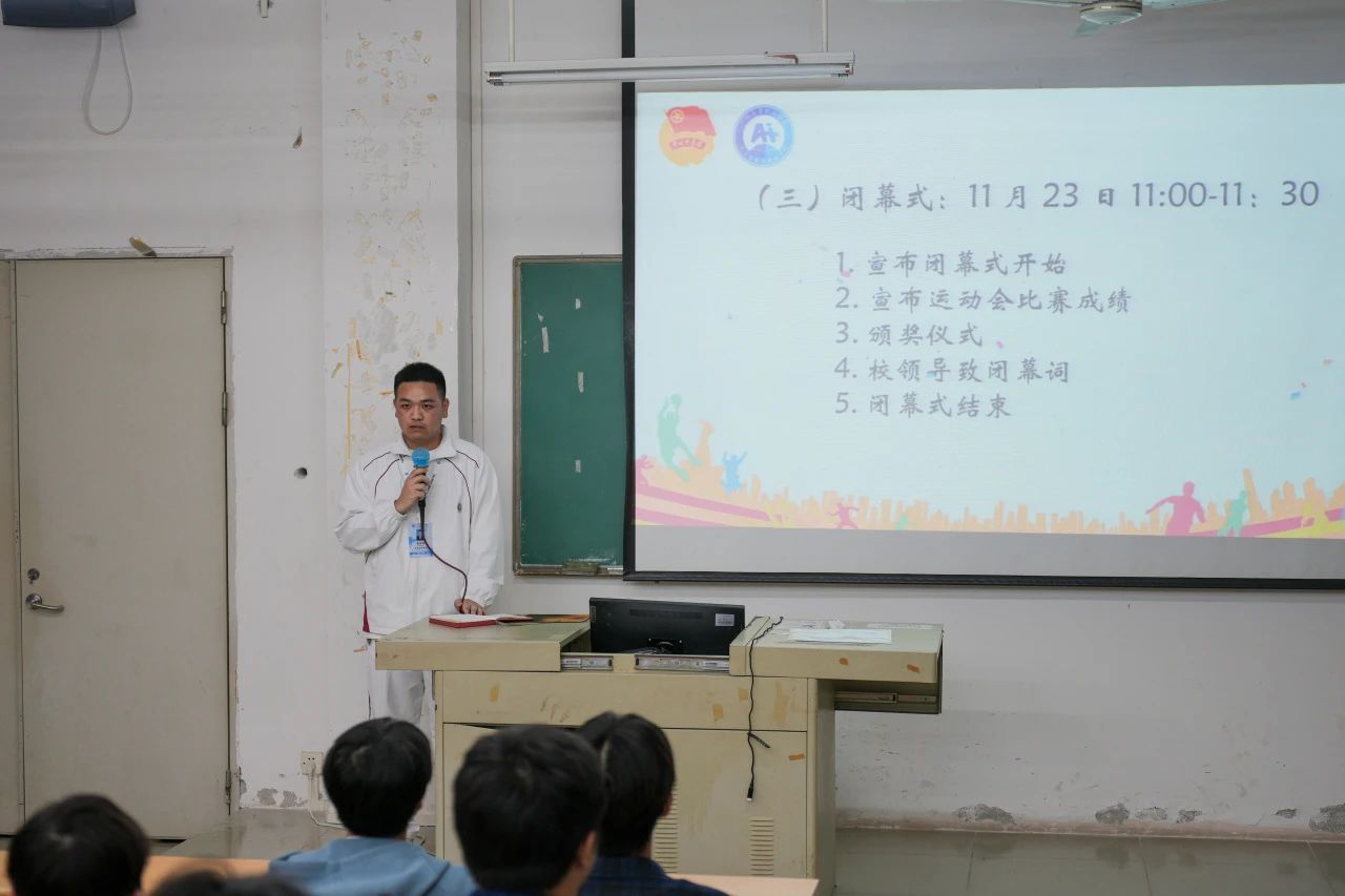 运动会的相关事宜由人工智能与数据学院团委主席团成员魏锴锴讲述。首先,他向大家展示了各部门与各班级在当日的具体位置示意图,方便大家了解当天自己所处位置。紧接着,他分别介绍了开幕式、竞赛期间、闭幕式的具体流程,以及在各个比赛中的注意事项,提醒运动员们调整好心态,保持最佳状态以迎接运动会。同时,还要将自己带来的物品带走,保持现场的干净整洁。