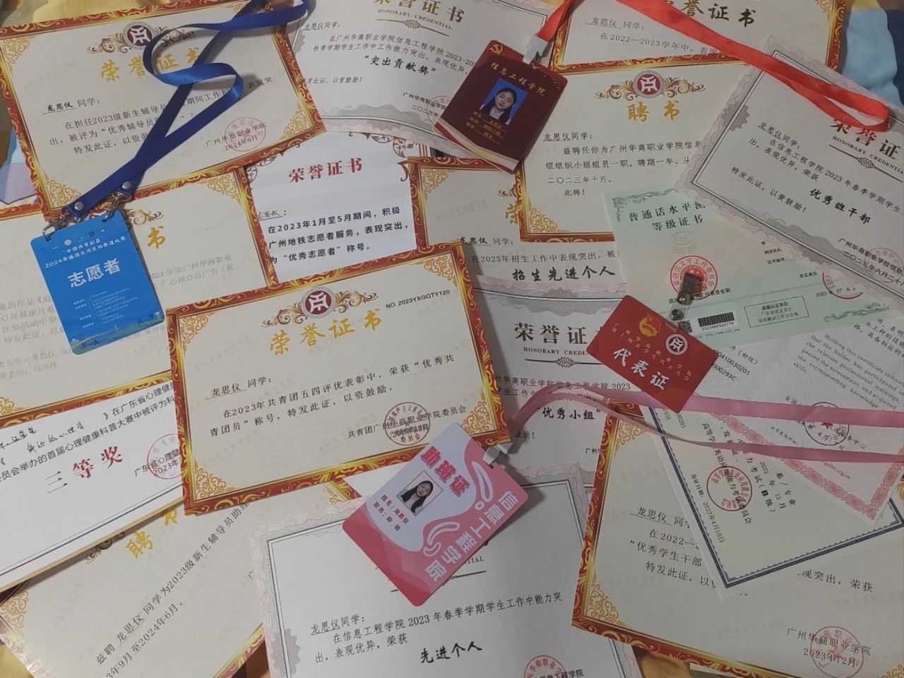 在2024年获广州华商职业学院“十佳优秀心理委员”称号