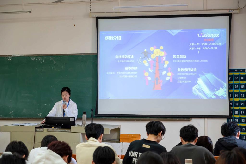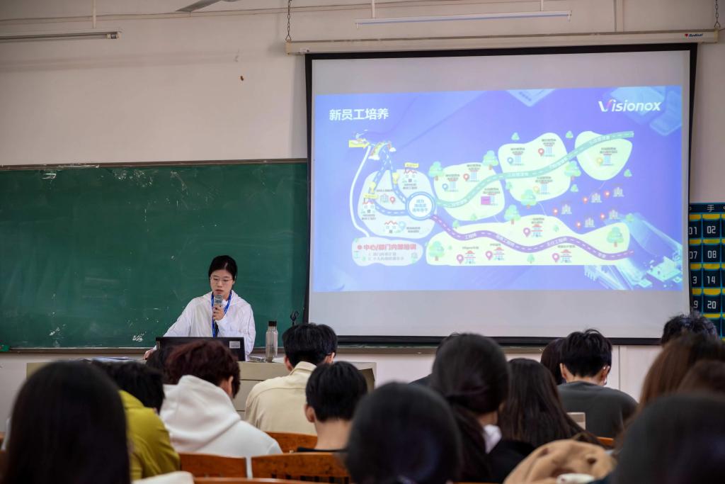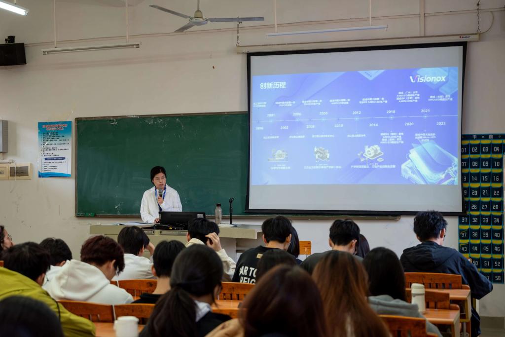 然后,喻梅提到广州国显科技有限公司的产业布局,四大创新基地讲解。同时她提出在广州地区的分公司在招聘实习生,分别有制造类技术员、品保类技术员、设备类技术员、工程类技术员、职能类助理等岗位。