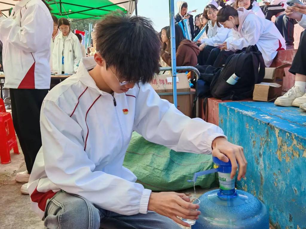 校运会的顺利进行离不开在后方的幕后服务台,党员志愿者们勤勤恳恳,在赛场后方时刻关注运动员状况,在运动员们拼搏后迅速投入到后勤工作中,有条不紊的为运动员提供物质补给,持续保障着赛场的后勤服务工作,他们用细致入微的工作态度诠释着责任与担当。