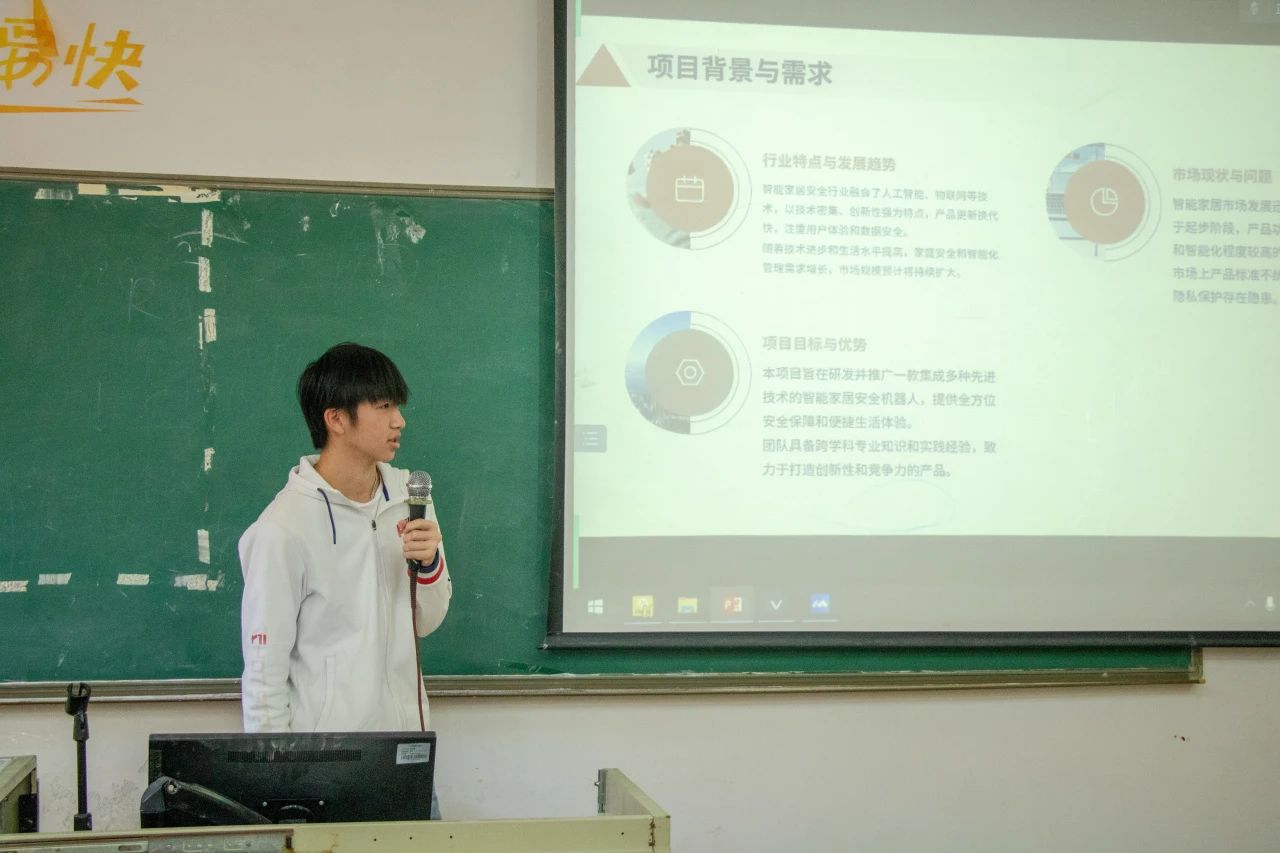 广州校区的选手们率先登场,他们带来的项目各具特色,令人目不暇接。梁文培的农业大数据服务平台,为农业发展插上了智能的翅膀;汪毅志的智能家居安全机器人,守护家庭安全,让生活更安心;魏锴锴的茶中香水项目,让小小茶叶成为人民致富的“黄金叶”;刘金佳的智能人体检测坐姿矫正台灯,关爱健康,从点滴做起;刘伟豪的地域华裳项目,则让我们感受到了传统文化的独特魅力。
