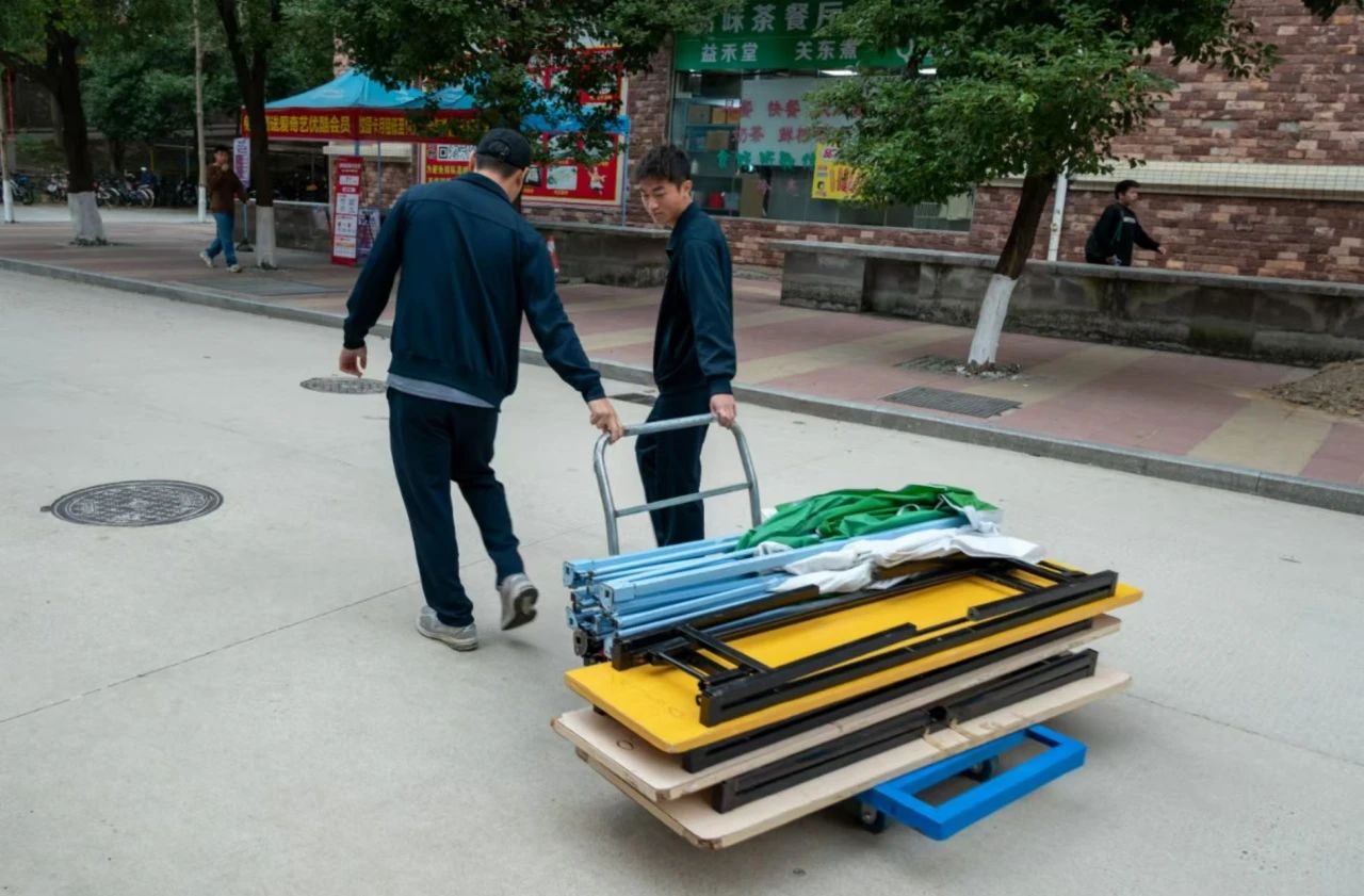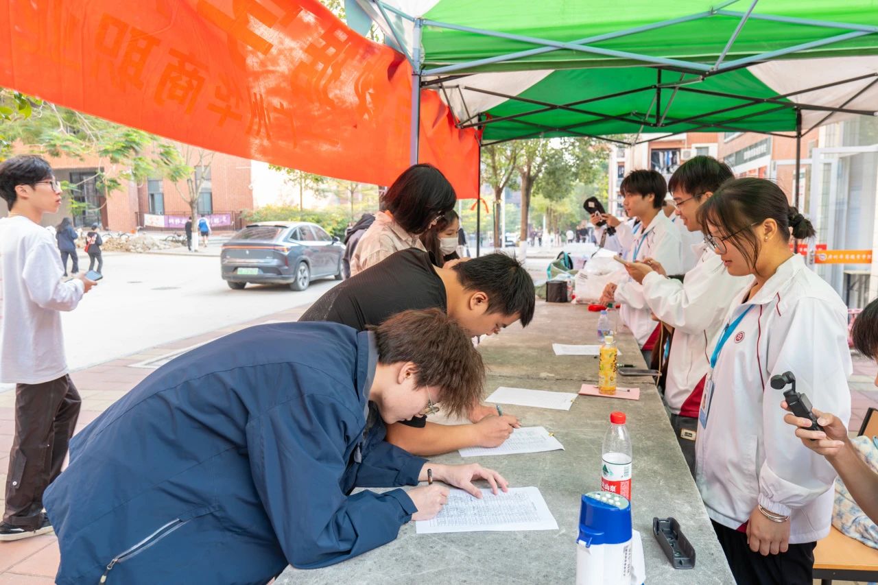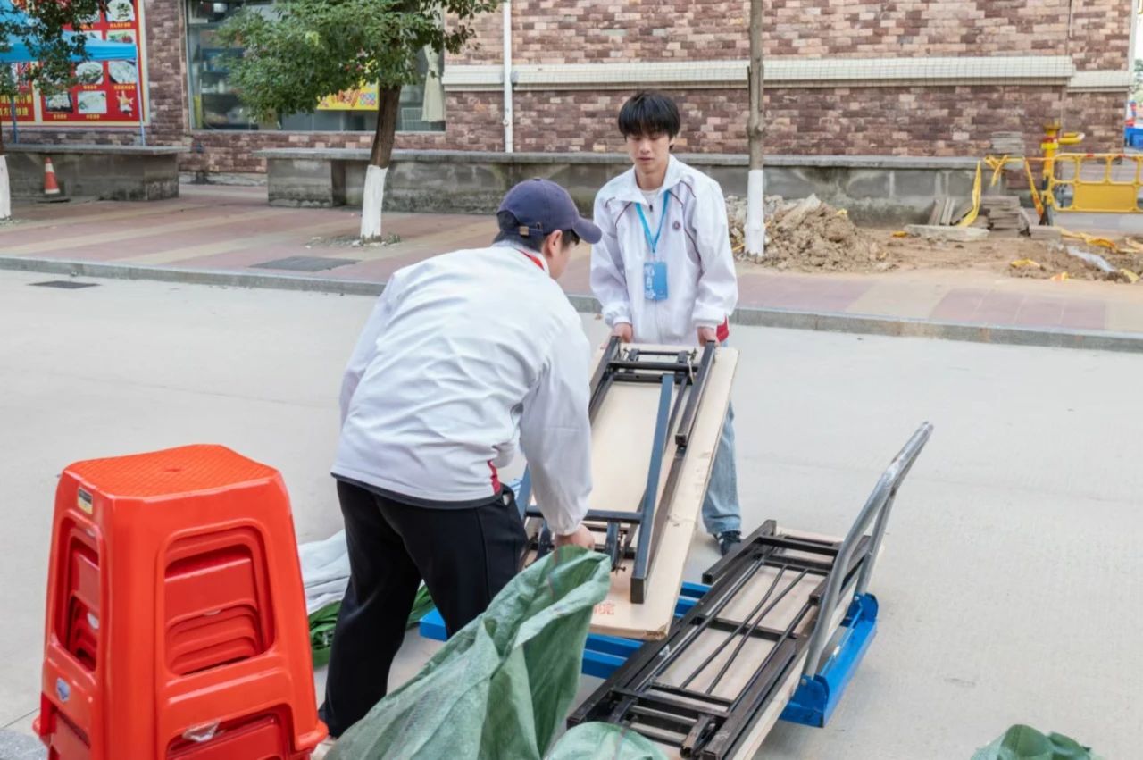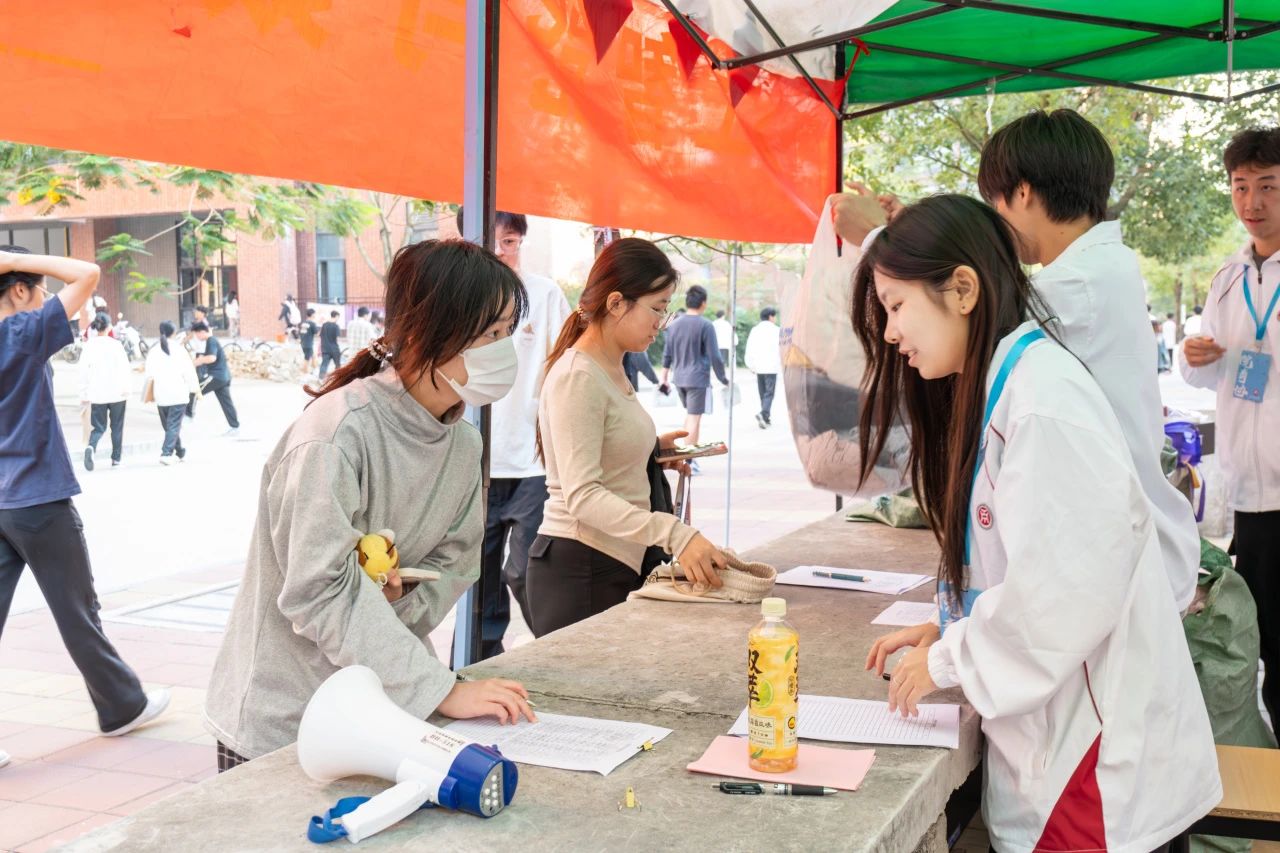 当第一缕阳光洒满校园时,志愿者们已经早早地集合在指定地点。早上八点半,志愿者们迅速投入到紧张而有序的准备工作之中。他们搬动桌子椅子,齐心协力地支起一个个摊位帐篷,每一个环节都井然有序。经过一番努力,活动场地布置完毕,为即将到来的同学们做好充分的准备。