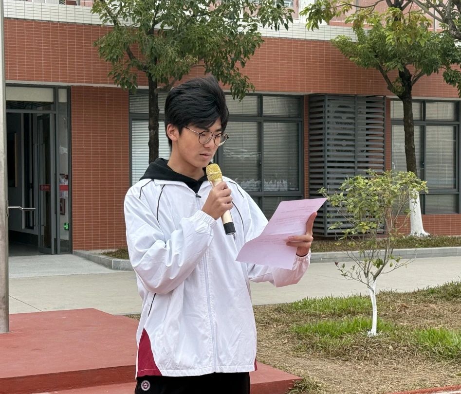升旗仪式后,学生代表张晓升同学在国旗下发表 “弘扬爱国志,奋进新征程” 主题演讲。他回顾往昔,指出革命先辈以热血和生命谱写爱国华章,长征途中、抗战岁月,无数英烈前赴后继,方得山河锦绣。今朝科研工作者默默耕耘,“中国创造” 闪耀世界舞台,教师们坚守岗位,培育栋梁之才助力民族复兴。他呼吁,身处新时代新征程,同学们应传承先辈爱国意志,以实际行动推动中国发展,携手共进,为实现中华民族伟大复兴的中国梦而努力拼搏。
