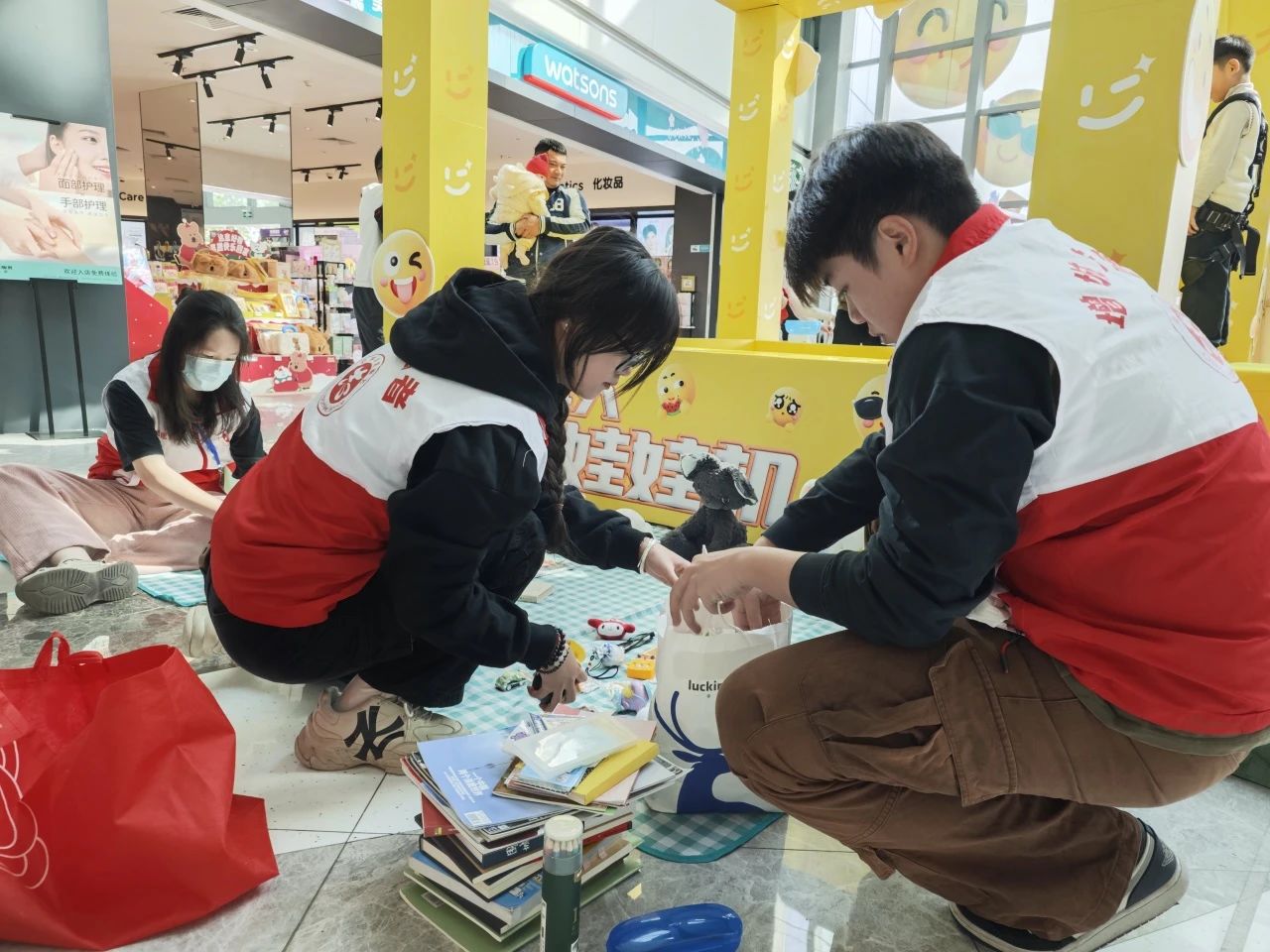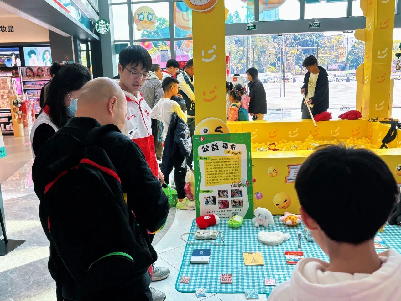 来到敏捷锦绣广场,广场上呈现出一片生机勃勃的景象。志愿者们早早就位,他们将各种待售的物品整齐地摆放在两块醒目的野餐布上。这些物品或新或旧,但都凝聚着大家的爱与关心。每一个小物件背后都有一个温暖的故事,等待着与新主人相遇。
