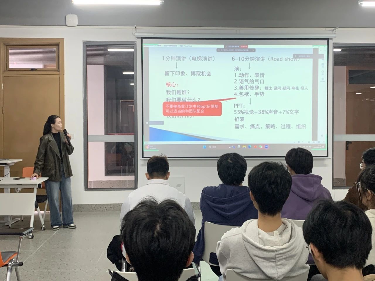 其次,针对参赛PPT这一竞赛关键要素,欧曼芸结合实际案例,深入剖析了制作要点。从PPT的整体架构如何逻辑清晰地呈现项目内容,到色彩搭配、图表运用等视觉设计技巧,再到演讲者的演示节奏与互动要点,都进行了细致入微的讲解。