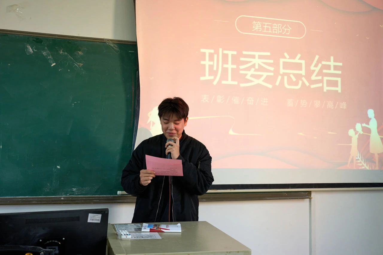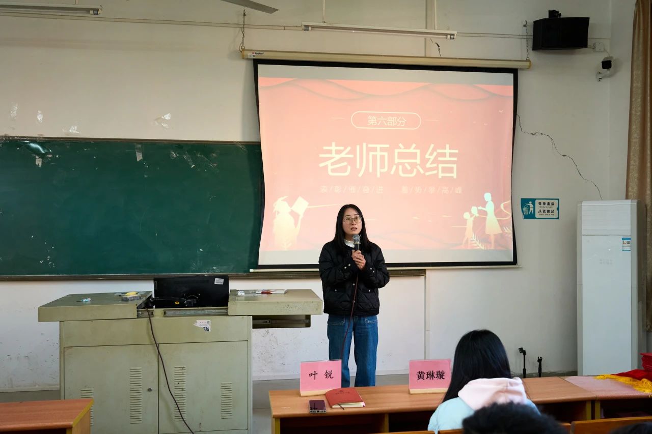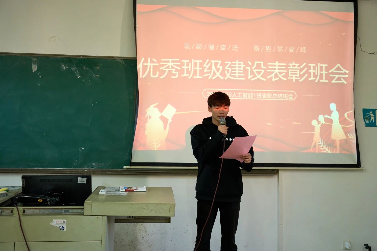 叶锐老师为我们总结本次表彰大会的意义和目的。同时她指出:优秀班级建设需要每一个同学的共同努力,希望大家都能以身作则,自觉遵守学校纪律,积极参加志愿活动和社会实践活动。相信在老师的关心和指导下,23人工智能1班将不断进步取得更好的成绩