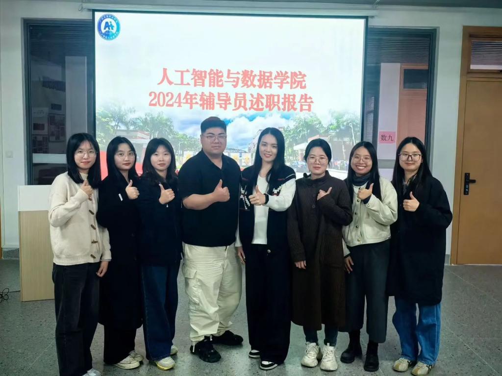 为锻造政治强、业务精、纪律严、作风正的辅导员队伍,切实加强辅导员队伍建设,1月2日下午,人工智能与数据学院通过线上线下相结合的方式在博学楼B406召开了2024年秋季学期辅导员述职汇报会。学院副院长欧曼芸以及全体辅导员参加。会议由院团委书记吴欣瑶主持。