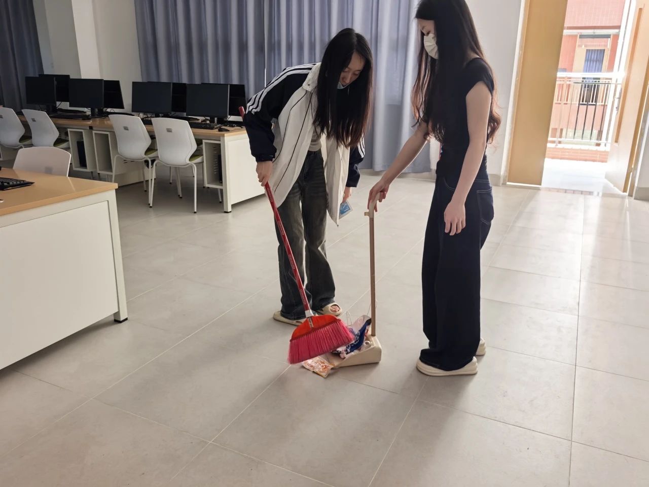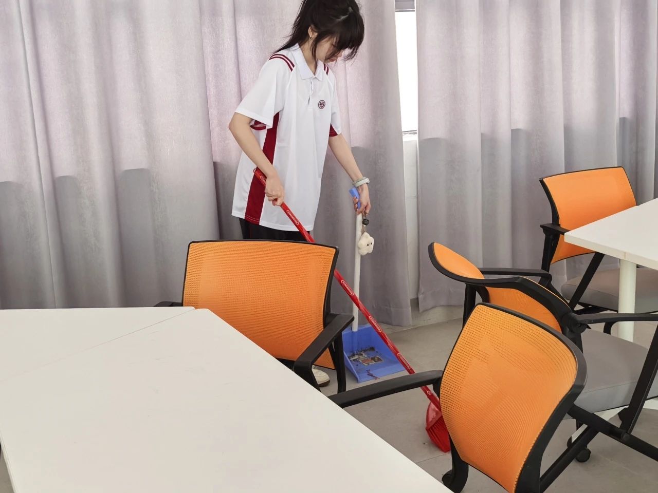 各位志愿者分工明确,各司其职,对教室、走廊和楼梯等区域进行了全面的清理。对教室卫生区域进行细致分工后,教室内处处涌动着忙碌的身影。同学们积极主动,为教室整洁明亮的环境辛勤劳动,挥洒着自己的汗水。