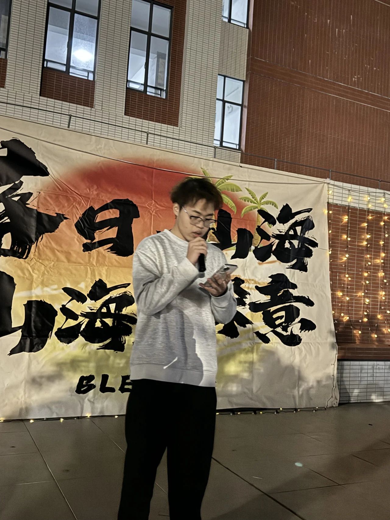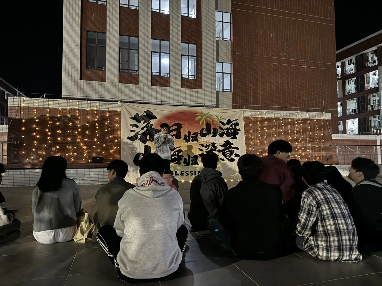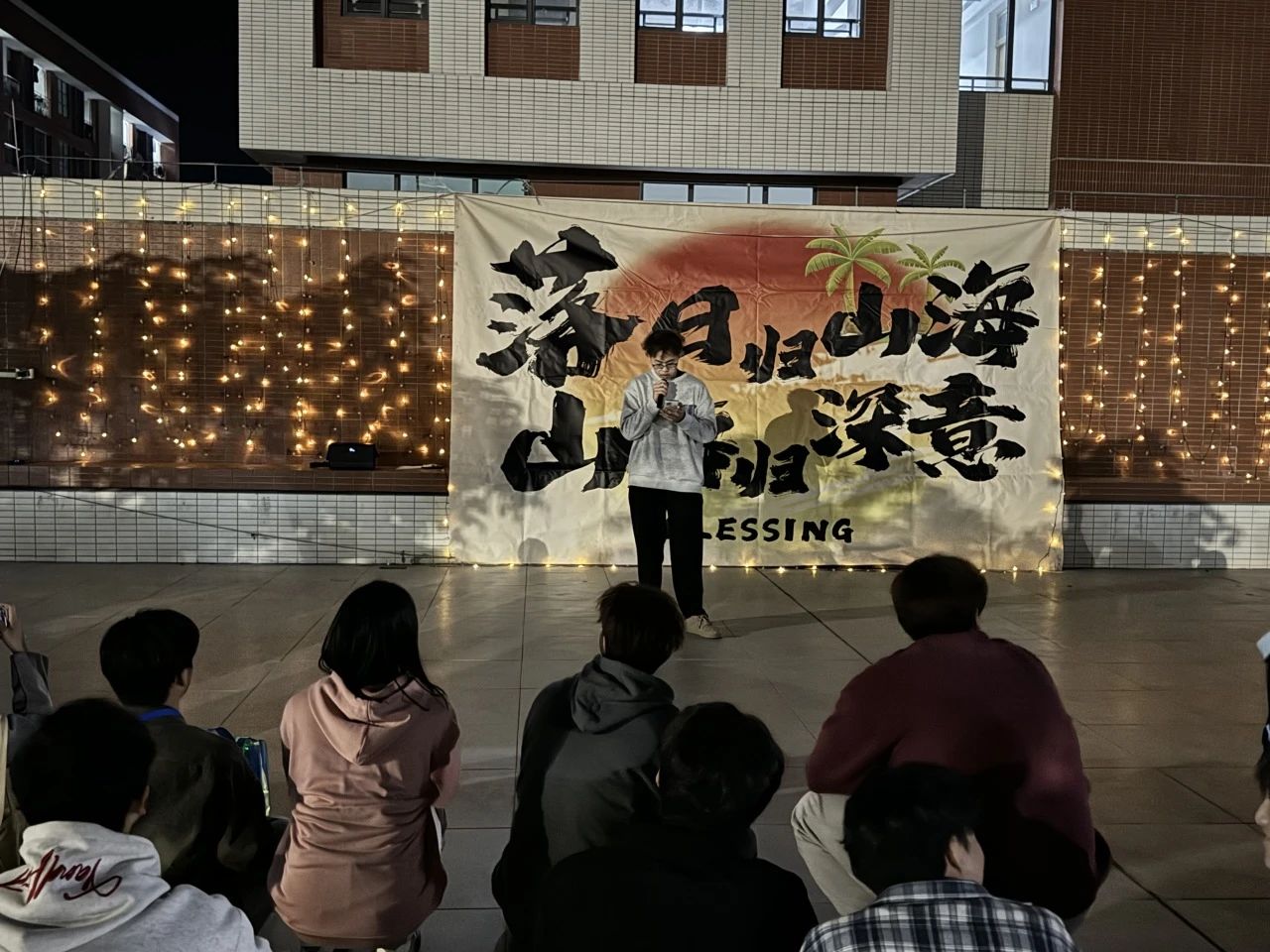 活动在启超书院的天台拉开帷幕,夜幕低垂,繁星点点,仿佛是大自然为这场交响诗会精心布置的舞台灯光。同学们带着对春天的热爱与向往,早早地聚集在这里,期待着一场视听盛宴的开启。