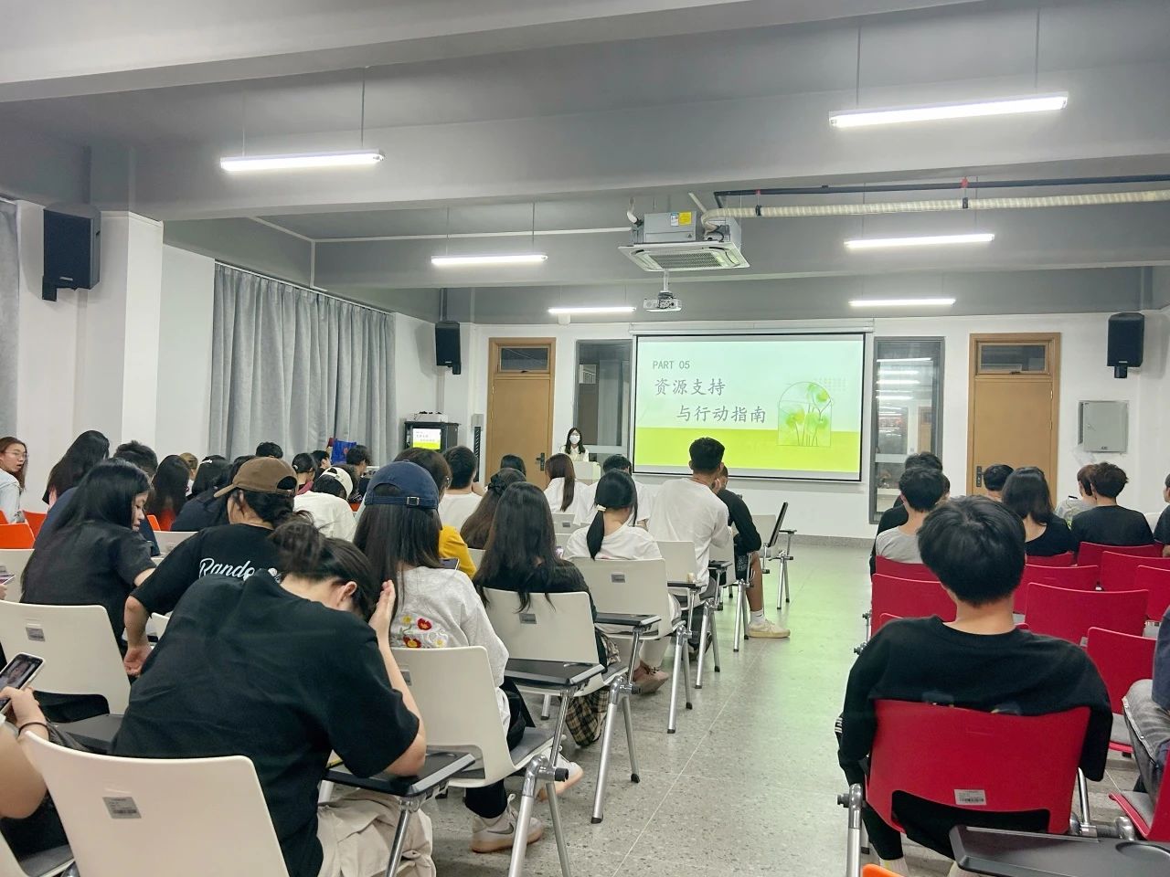 最后,为确保宿舍心理信息员能够及时、有效地为有需要的同学提供帮助,两位老师还重点介绍了学校心理中心、学院二级心理辅导站的位置以及预约方式等基本信息,并呼吁各宿舍心理信息员在日常生活中要多多关心身边同学,关注其心理健康情况,必要时应建议其主动预约心理辅导。