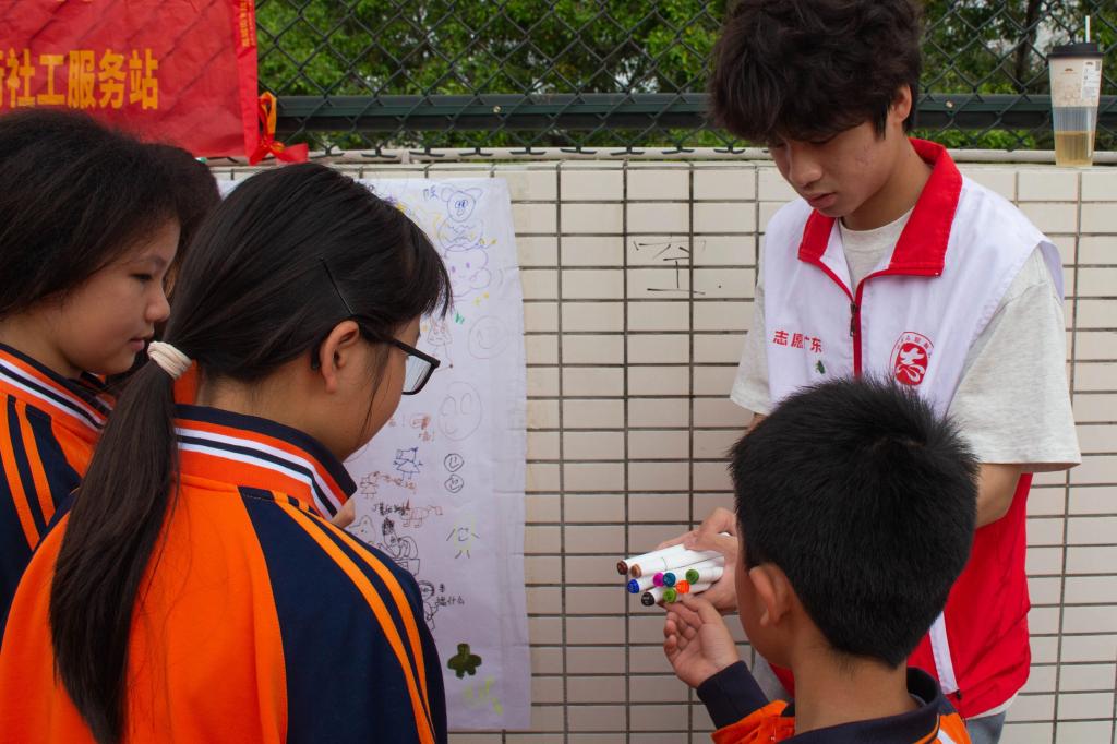 志愿者核对同学们的答案,为同学们讲解心理健康知识。