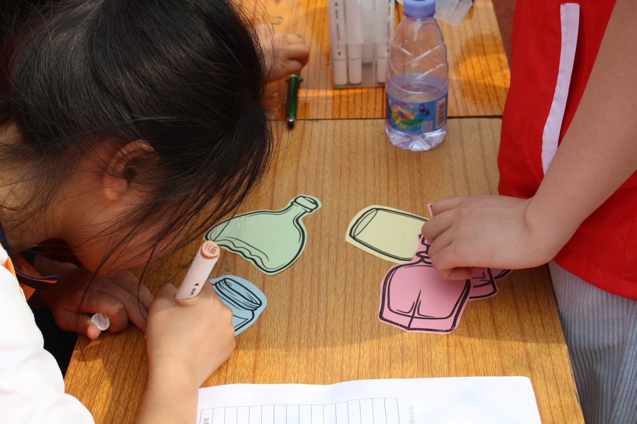 在志愿者帮助下完成漂流瓶制作,同学们在瓶中写下自己独特的放松方式。