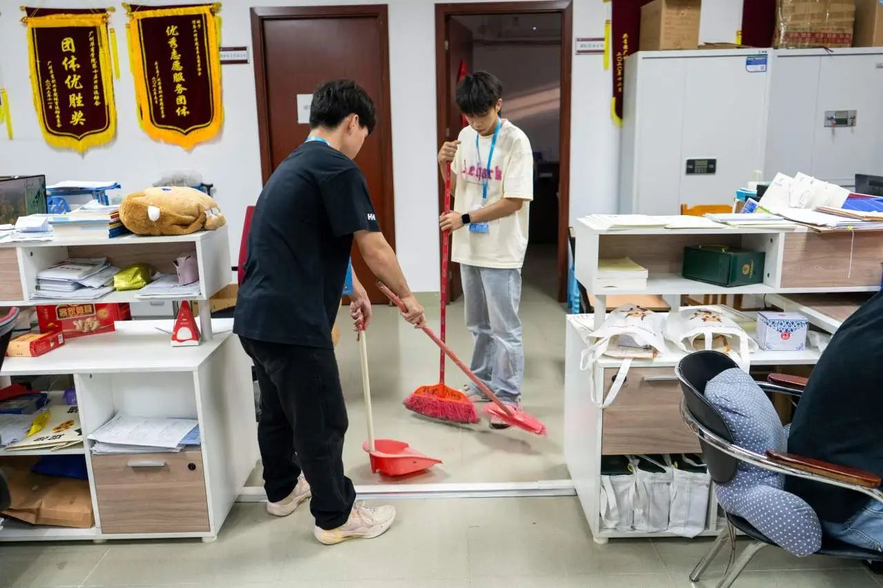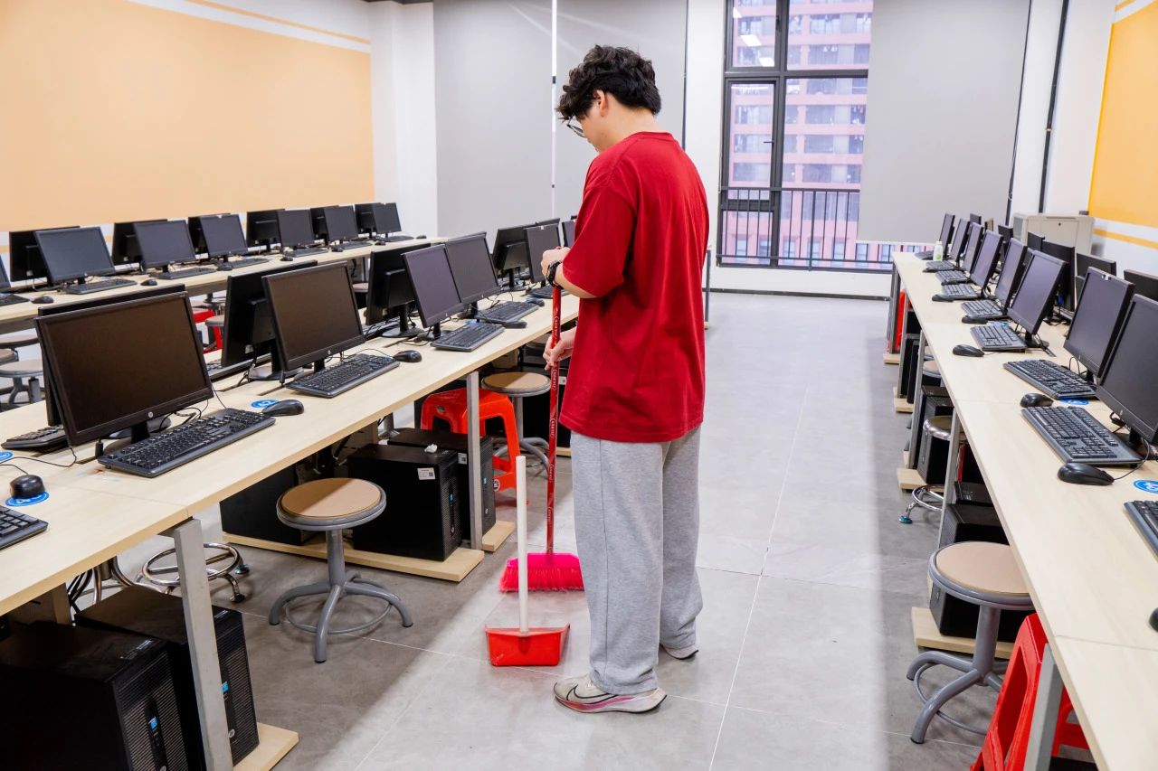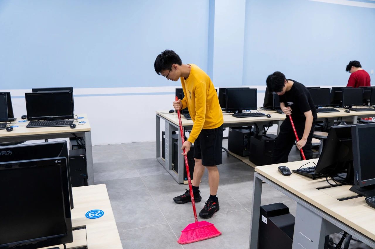 活动现场,志愿者们干劲十足,他们手持扫帚,认真、细致的打扫教室的各个角落,不忽略任何一处卫生死角