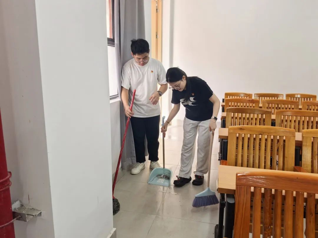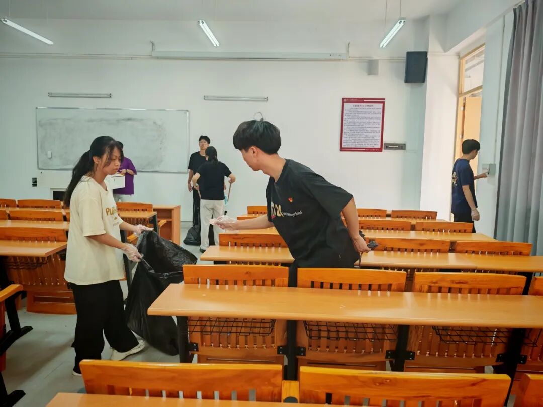 为营造整洁有序的考试环境,展现江门校区启超书院学子良好素养与奉献精神,进一步推进“我为群众办实事”实践活动常态化开展,2025年6月13日下午,广州华商职业学院江门校区启超书院青年志愿者协会组织开展课室卫生清洁志愿服务活动,以实际行动迎接即将到来的全国大学英语四六级考试。