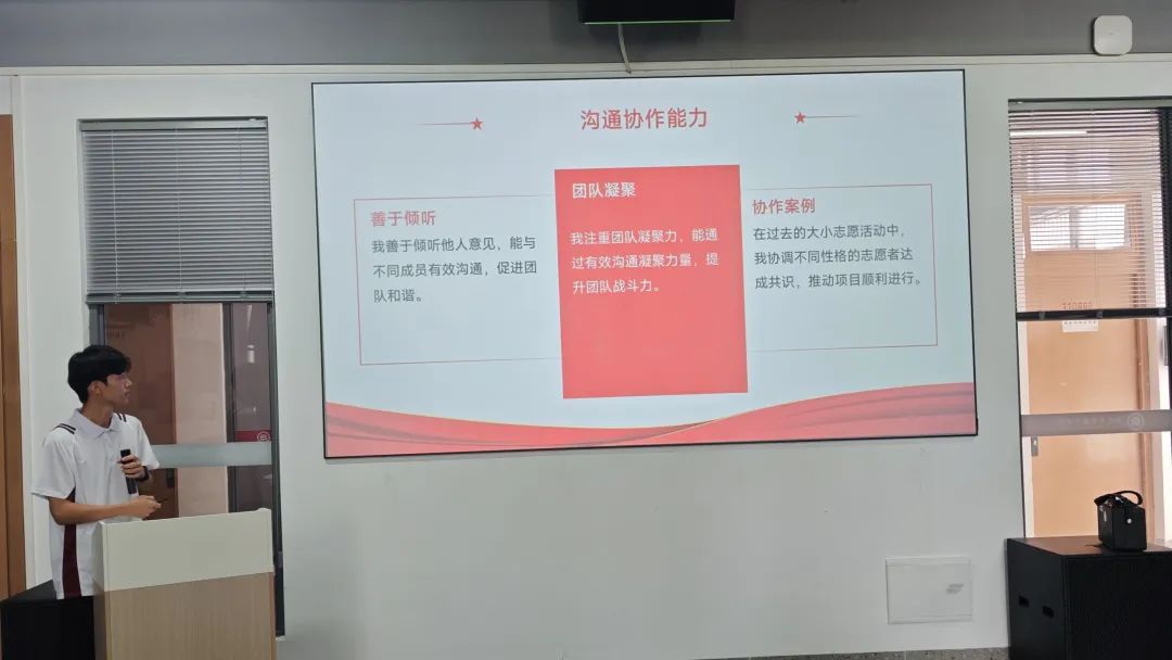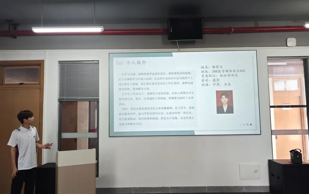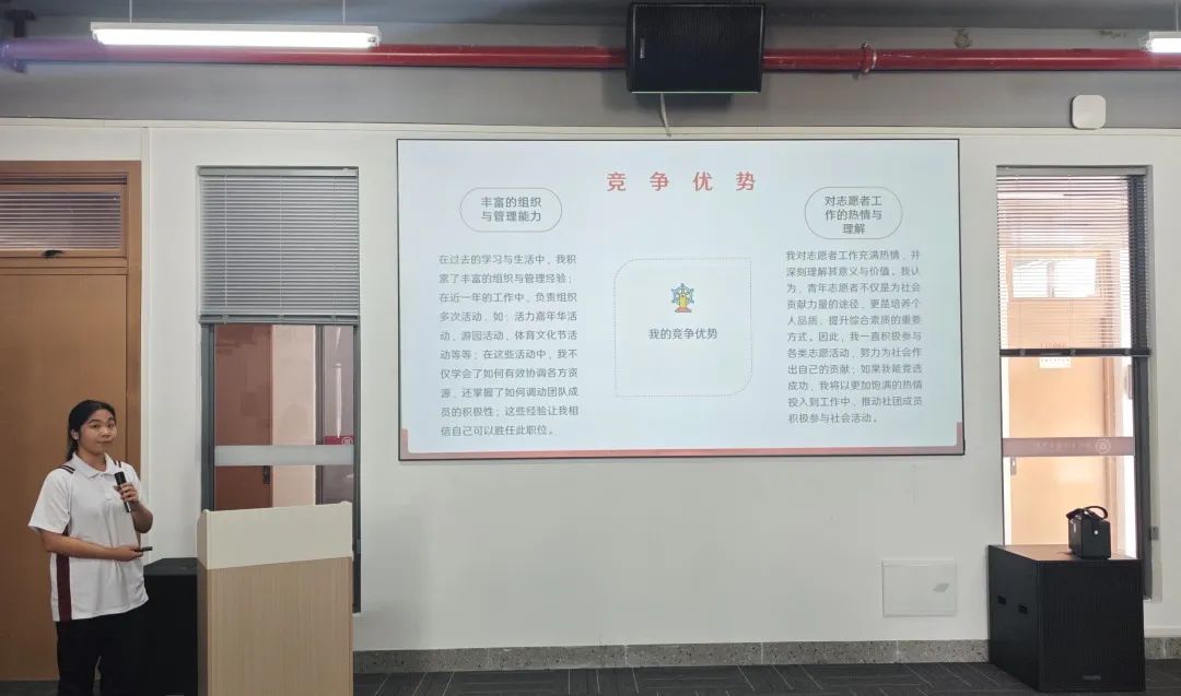 竞选环节中,候选人依次登台,结合个人履历与组织部门工作经历,从履职感悟、竞选优势切入,深入剖析个人能力,系统阐述对学生组织工作的理解;同时立足实际,围绕组织建设、服务创新等维度,提出未来工作的规划与展望,充分展现出自信担当的精神风貌与务实进取的工作思考。