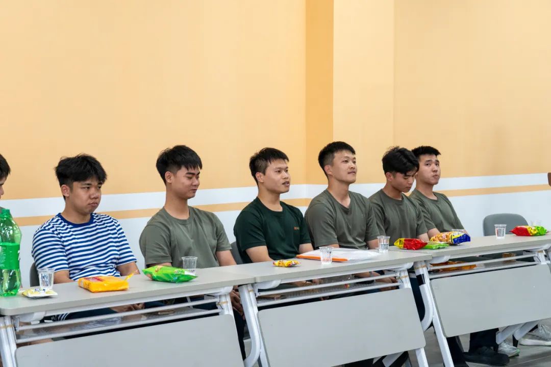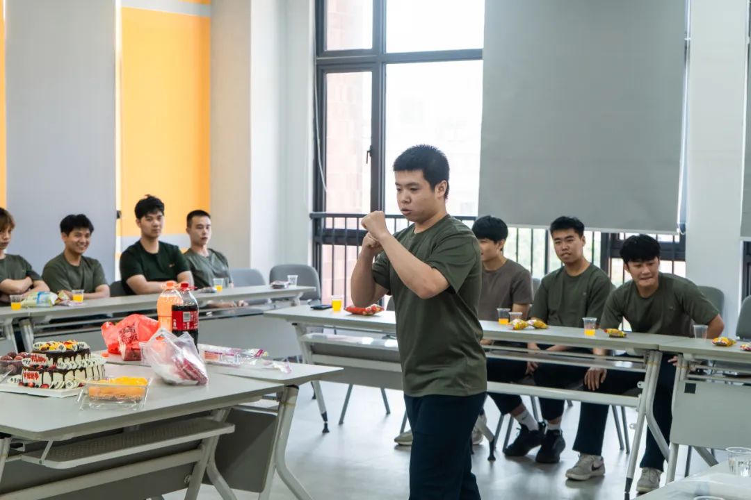 首先,国防教育组指导老师赖勇计代表党总支向“寿星们”送上生日祝福,他高度赞扬了退役学生们携笔从戎的家国情怀和奉献精神,充分肯定了他们返校后展现出的良好精神风貌和适应能力。