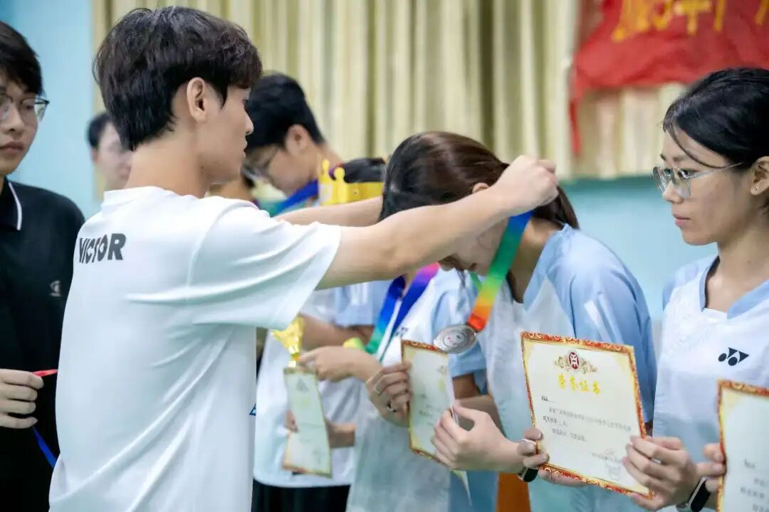 为了丰富校园文体生活,激发师生运动热情,广州华商职业学院羽灵羽毛球协会于6月11日-13日,16日-17日举办“精英杯”师生羽毛球赛。赛事在励志楼羽毛球馆火热开展,九大二级学院、超百位选手同场竞技,用汗水与热爱书写了一场青春洋溢的运动盛宴。让我们一起回顾这场热血沸腾的比赛吧!