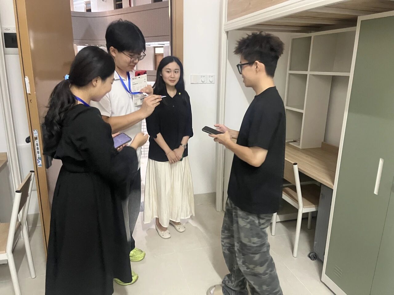 新生报到的两天,校、院领导、辅导员和助班们纷纷走进新生宿舍,耐心开展全方位交流。内容涵盖反诈安全、宿舍规范、学习生活指导等,细致周到的提醒与关怀,让新生们感受到了“全方位守护”的温暖与责任。