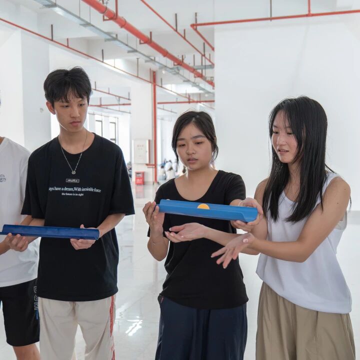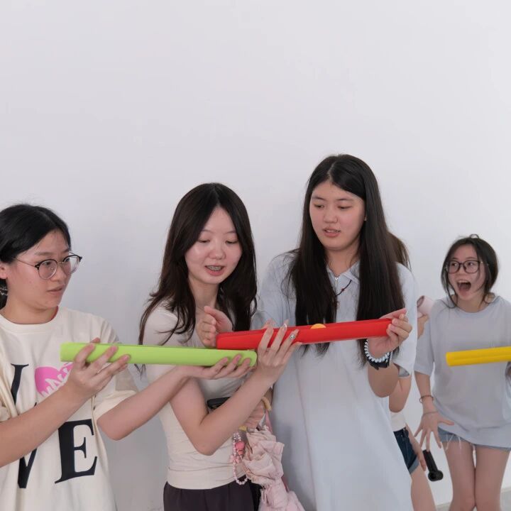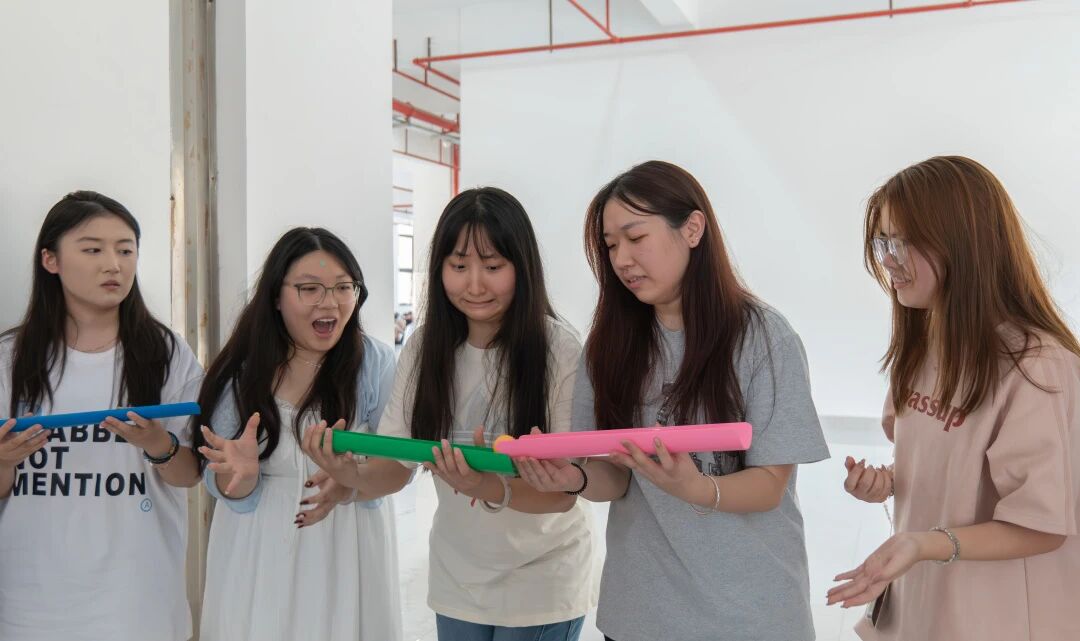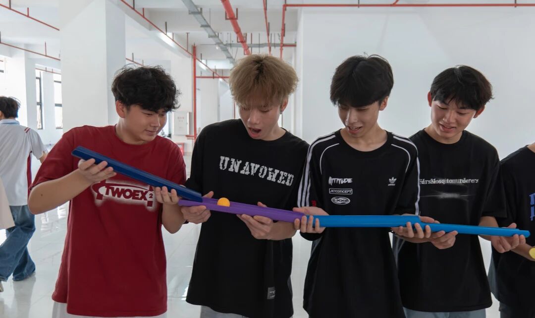 “接力运小球”游戏同样精彩。新生们分组后,每组同学手持半圆形管道,合力搭建“通道”,让小球从起点顺利“跑”到终点。过程中,大家全神贯注,相互提醒调整管道角度与间距,在团队协作中增强凝聚力,也深刻体会到默契配合的重要性。