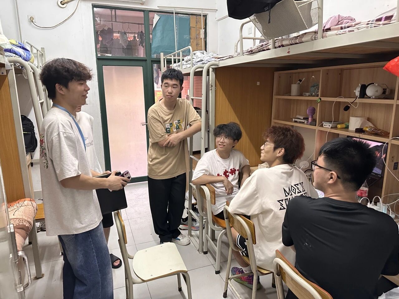 走访过程中,各组织深入新生宿舍,一方面细致检查内务整理情况,耐心指导同学们规范收纳物品、清洁卫生死角,助力打造窗明几净的居住空间;另一方面,围绕宿舍安全与防诈知识展开沟通,结合真实案例提醒大家注意用电安全、防火防盗,警惕电信网络诈骗陷阱,切实增强新生的安全防范意识。