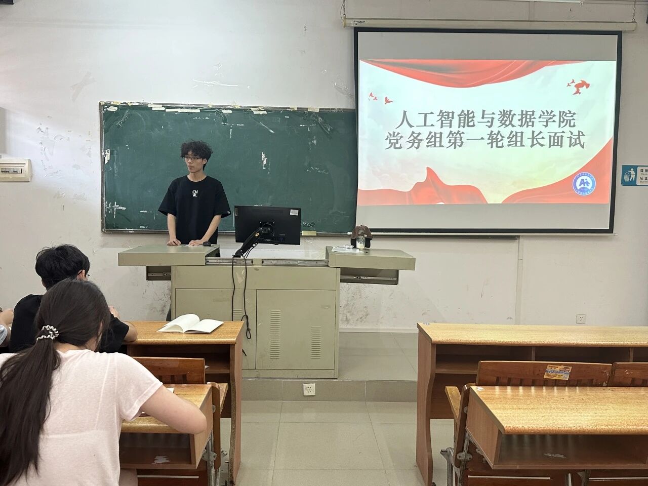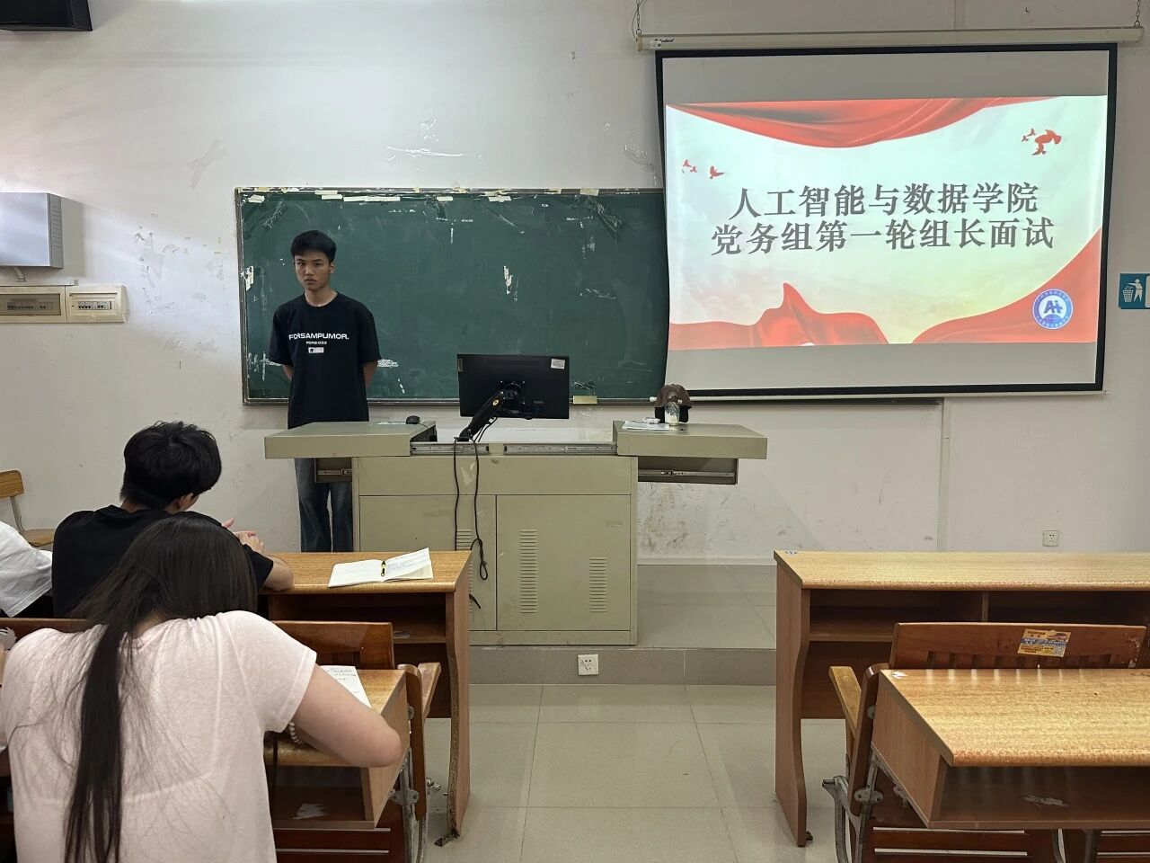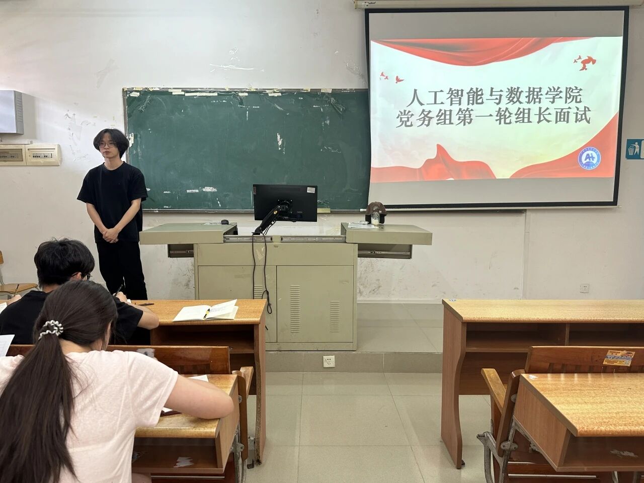 为进一步加强我院党建工作队伍建设,推动党务工作高效有序开展,人工智能与数据学院党务组于6月25日在博学楼C406开展第一轮党务组组长面试。