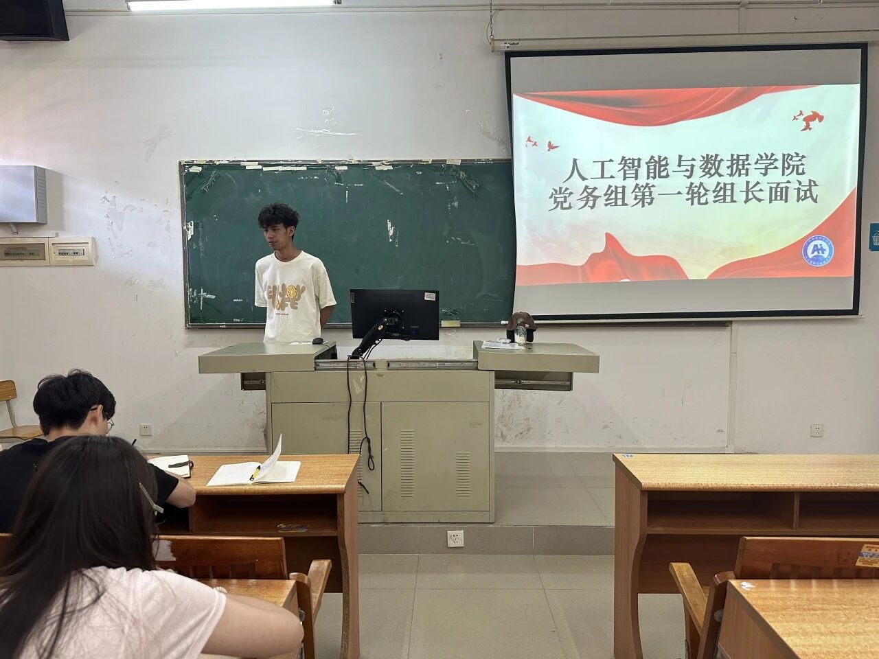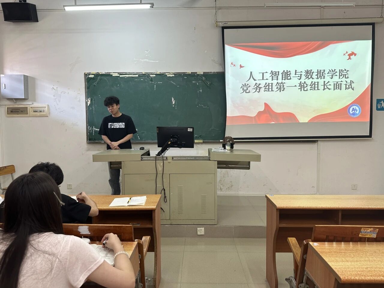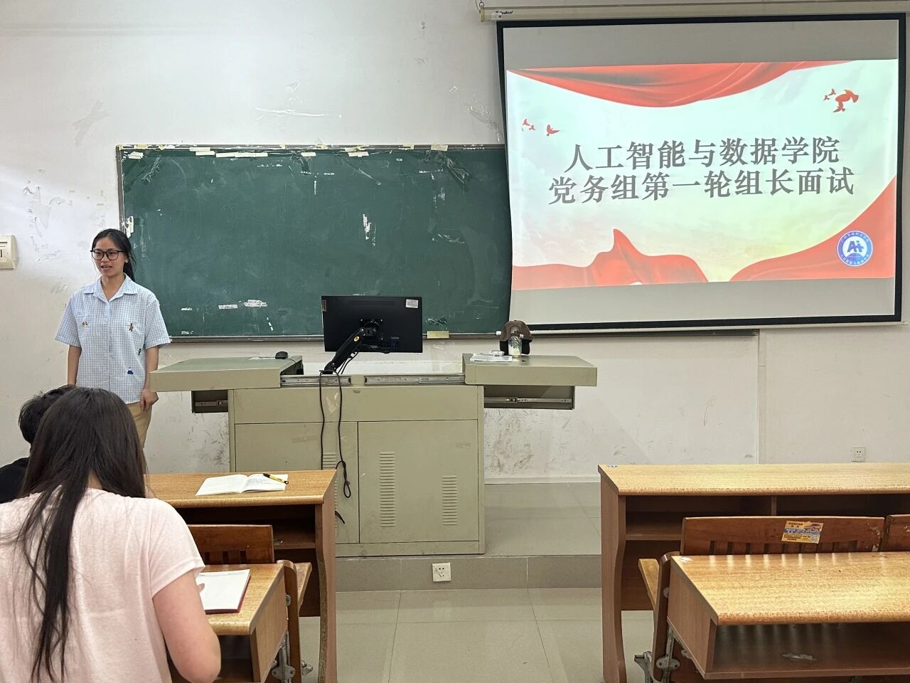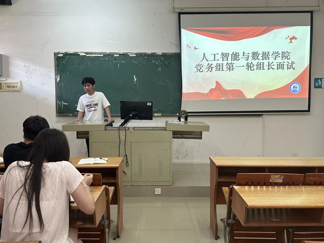 为进一步加强我院党建工作队伍建设,推动党务工作高效有序开展,人工智能与数据学院党务组于6月25日在博学楼C406开展第一轮党务组组长面试。