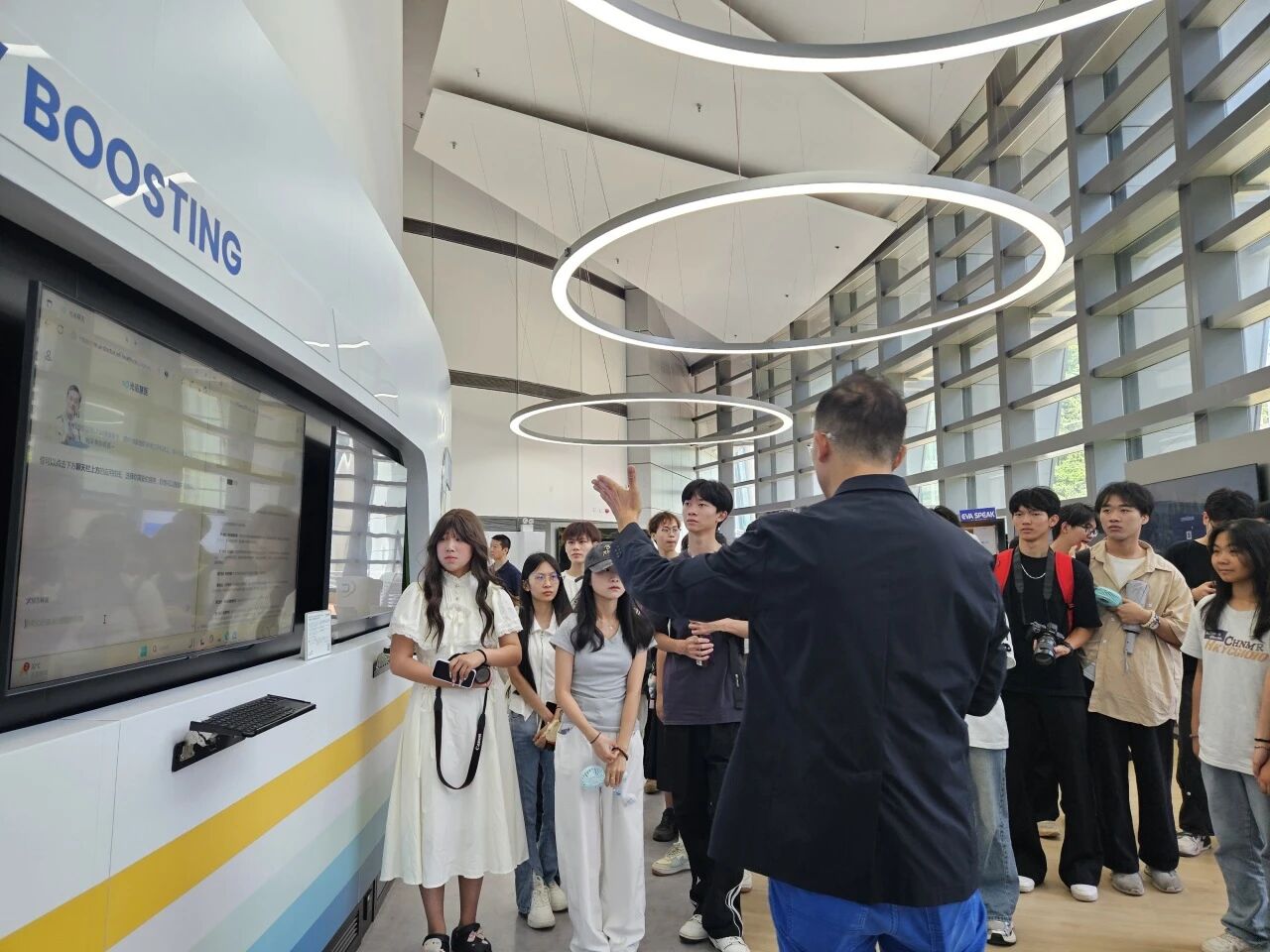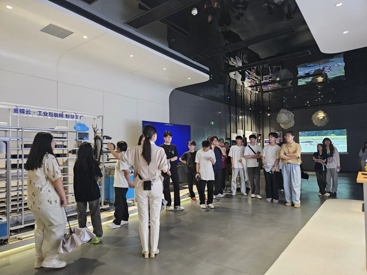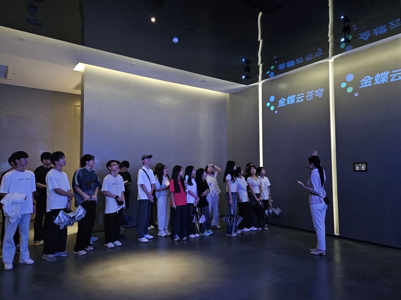 在参观过程中,大家跟着讲解员的脚步,深度探秘金蝶在企业管理云服务领域的“黑科技”。从智能财务系统如何让数据“活起来”,到供应链管理平台怎样实现高效协同,每一处展示都像打开新世界的大门,让同学们亲眼见证科技如何为企业运营注入新活力。和金蝶工作人员面对面交流时,大家你一言我一语,抛出各种好奇的问题,对企业级云服务有了更鲜活的认识。这场参观,不仅是知识的扩充,更像一把钥匙,打开了同学们对未来职业发展的全新想象。