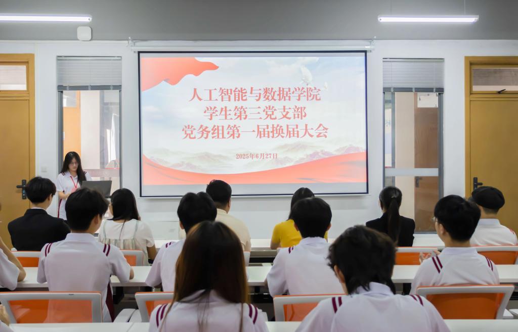此次换届大会顺利完成了新老交替的重要使命,不仅全面总结了过往的丰硕成果,对即将结束任期成员的工作表现给予了高度评价与表彰,更为新一届组长明确了职责、赋予了重任。坚信在新一届党务组的引领下,人工智能与数据学院学生第三党支部党务组将汇聚强大合力,开创党务工作新局面,推动各项工作再攀新高。