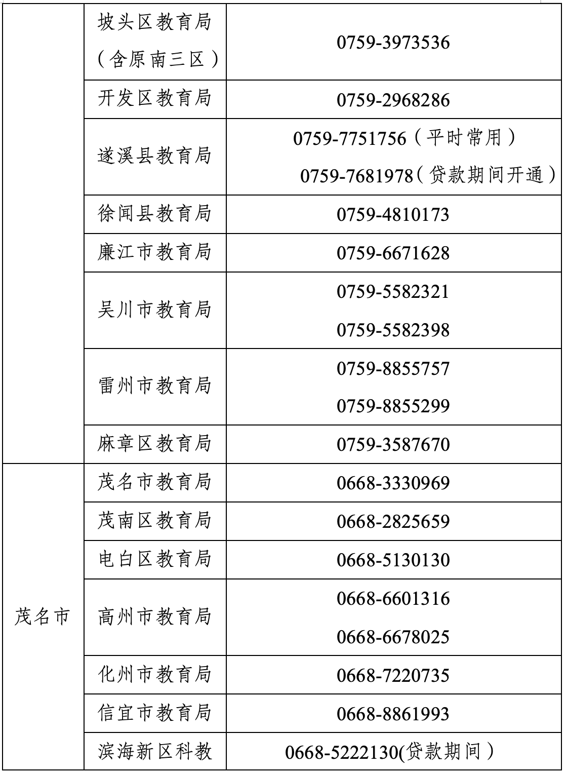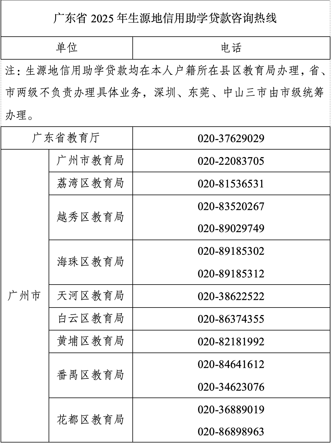 信用助学贷款咨询热线