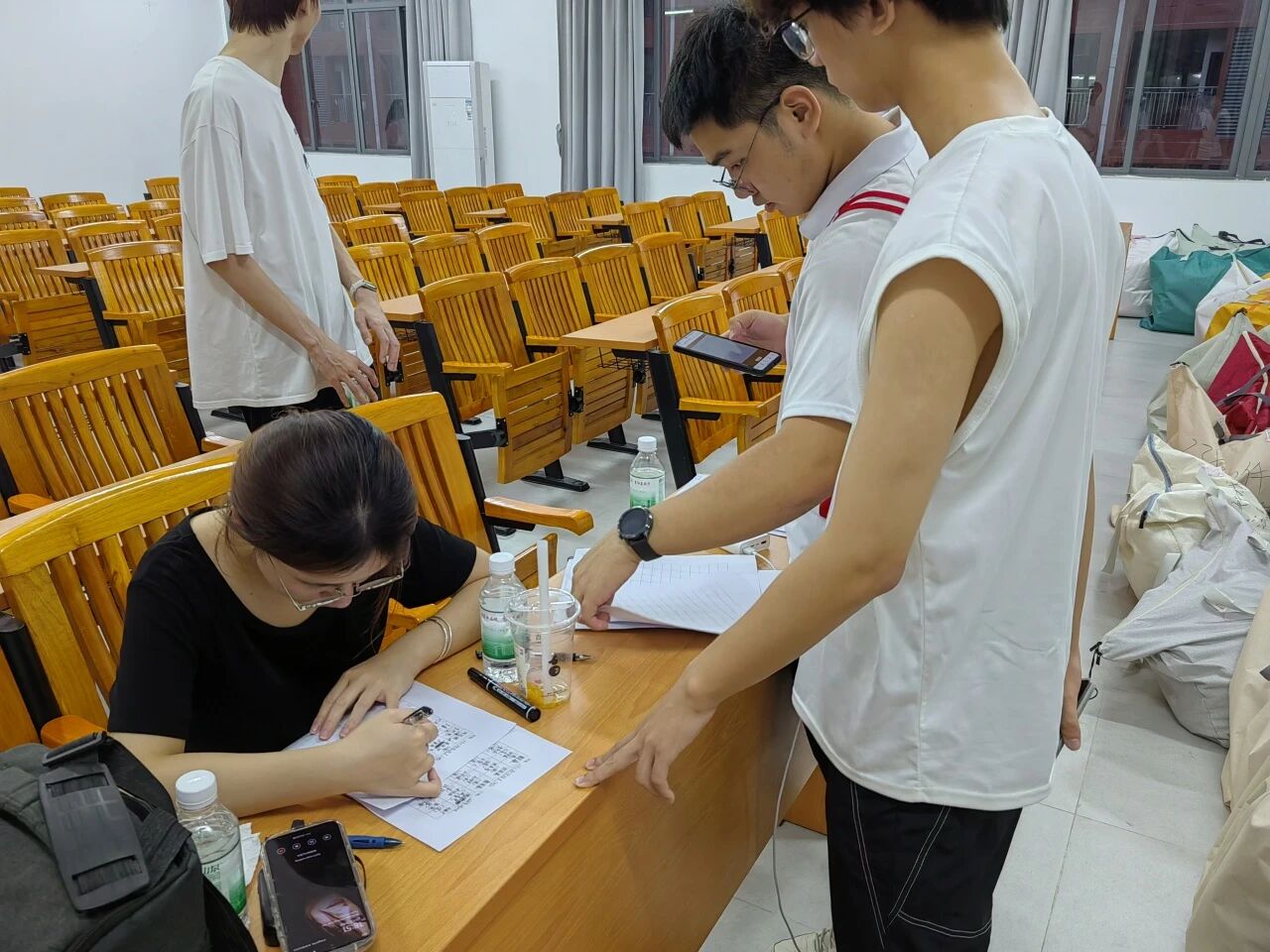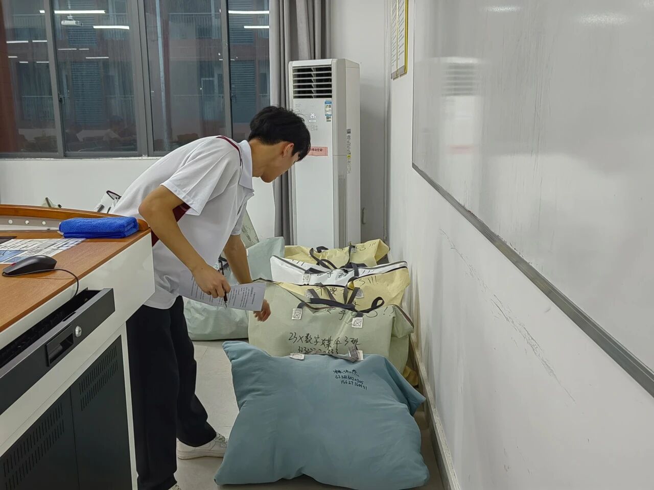 在完成存放工作后,志愿者们对现场的行李进行清点,此外还逐一检查各自所负责教室的门窗、电源等安全细节,确保场地关闭妥当、安全无虞,真正做到了“交得安心、存得放心”。