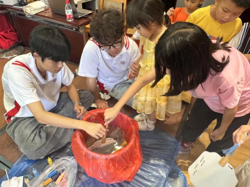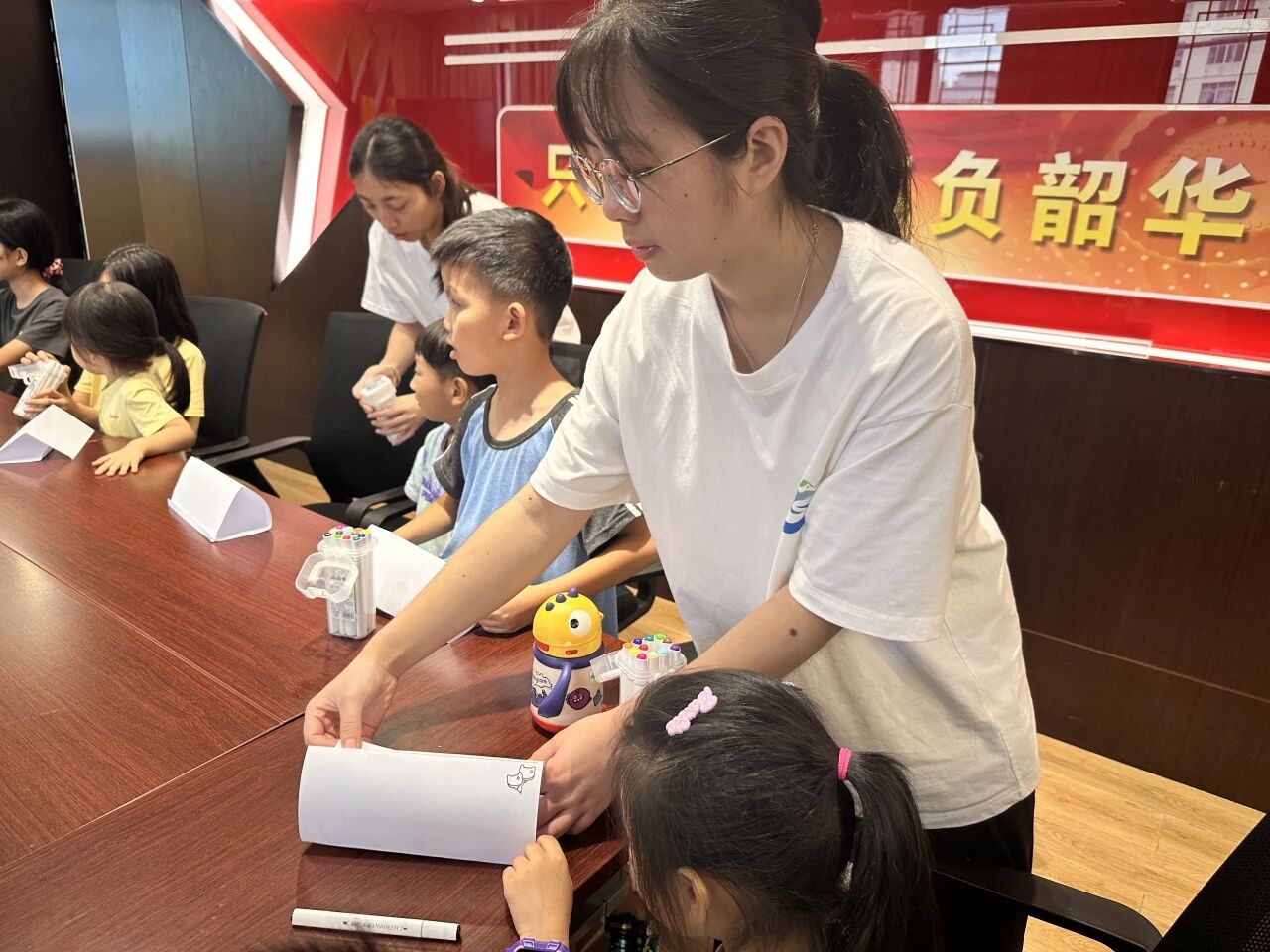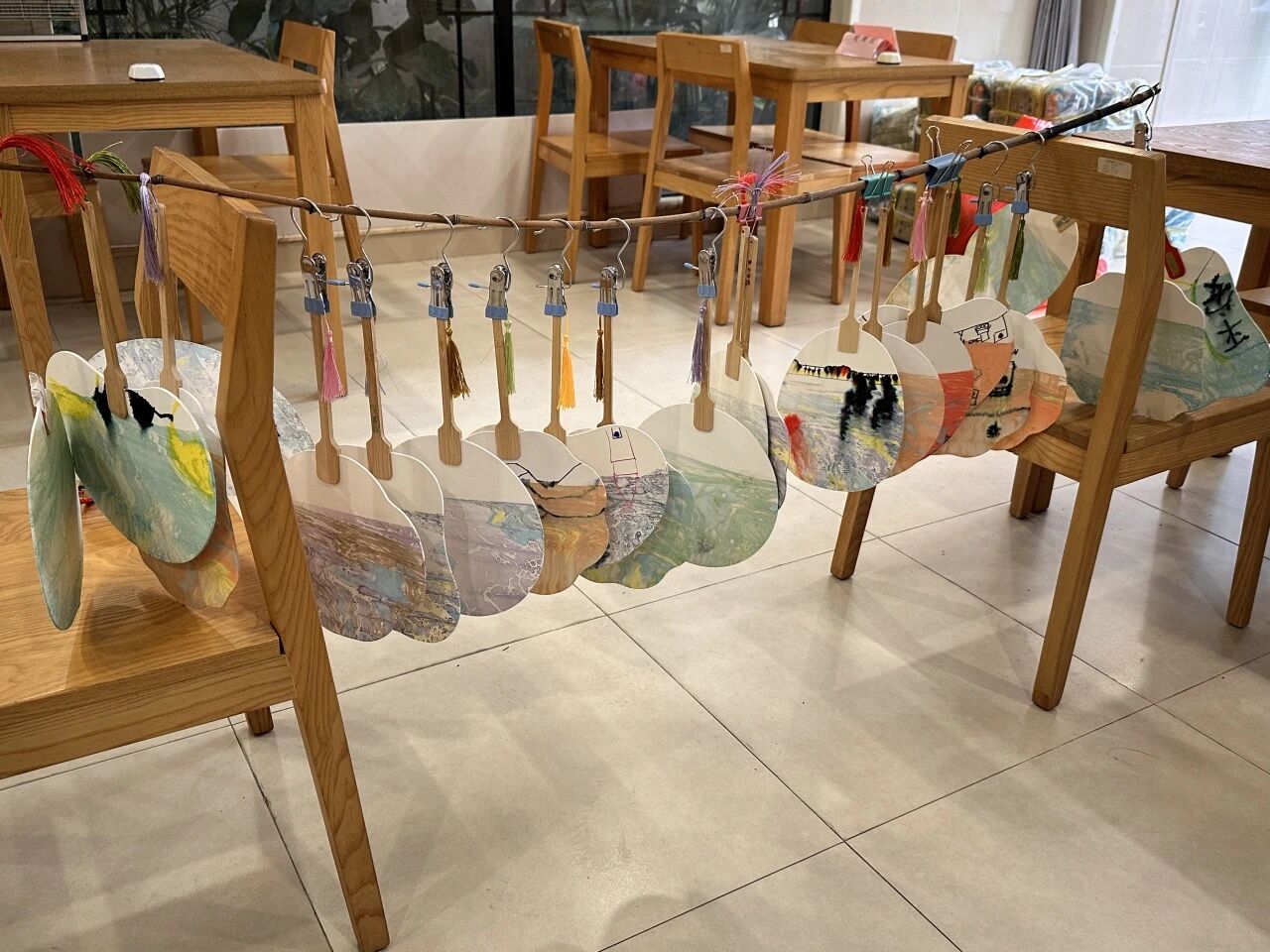 孩子们尽情挥洒想象,用五彩颜料勾勒,写下美好祝福,志愿者在旁耐心指导、不时鼓励,当一把把扇子变得色彩斑斓、童趣盎然,孩子们互相展示、欢笑阵阵,想象力与创造力在协作分享中充分释放。