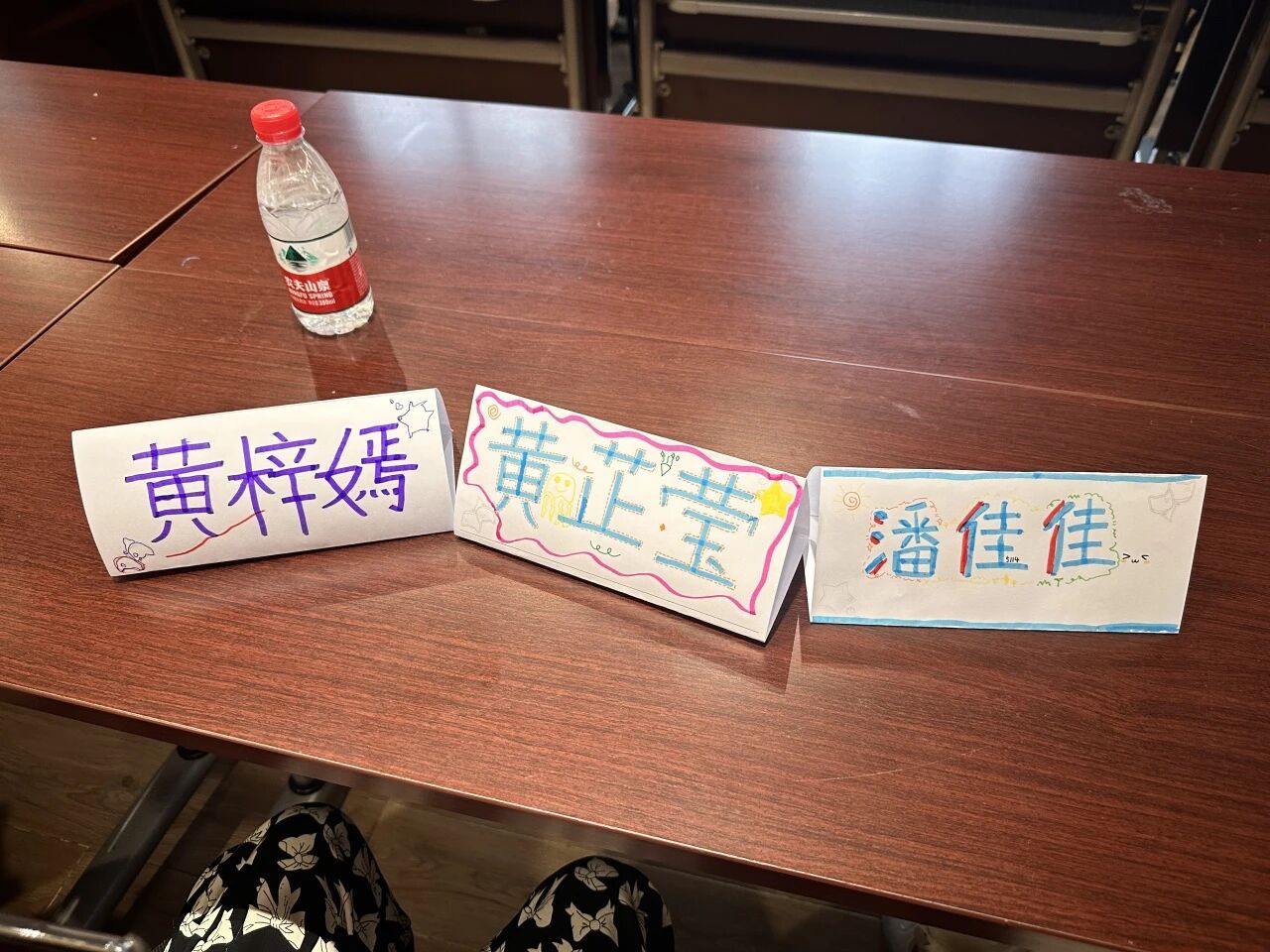 DIY 台卡则让每个孩子都拥有了专属标识,各色彩笔等材料前,他们设计样式、书写名字、描绘图案 ,志愿者引导他们思考如何让台卡更稳固美观,比如对折白纸增加厚度、搭配彩笔让名字更醒目,当小巧个性的台卡完成并摆在座位前,孩子们的自豪之情溢于言表,动手与设计能力在这份专属喜悦中悄然提升。