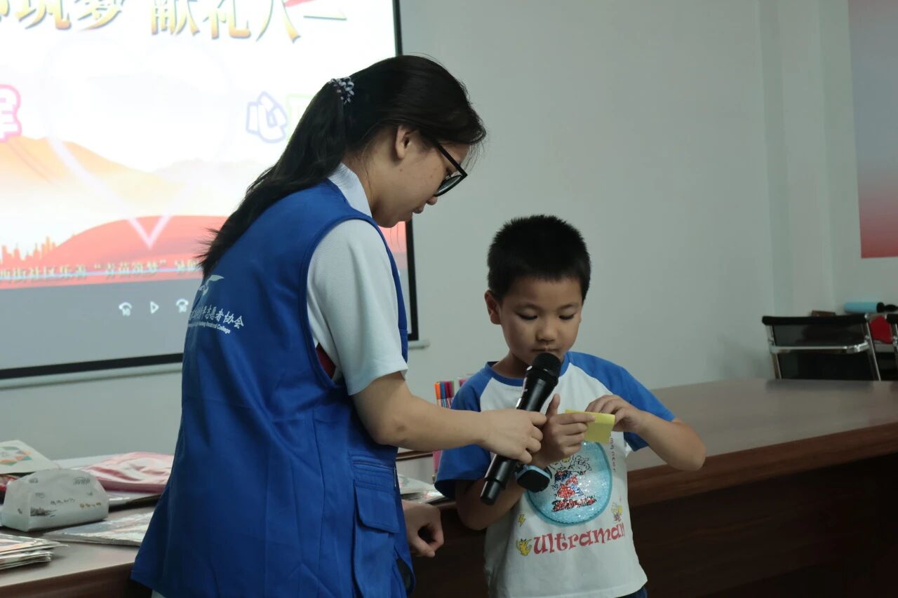 “绘制未来的自己” 环节里,孩子们拿起画笔勾勒心中模样:有的画着开战斗机的飞行员,有的画着摆满零食的小卖部老板,轮廓里藏着对成长的期待。志愿者们俯身细心指导,彩色墨汁在纸上晕开,每个 “未来的自己” 都鲜活明亮,这是想象力在童心最自然的流淌。