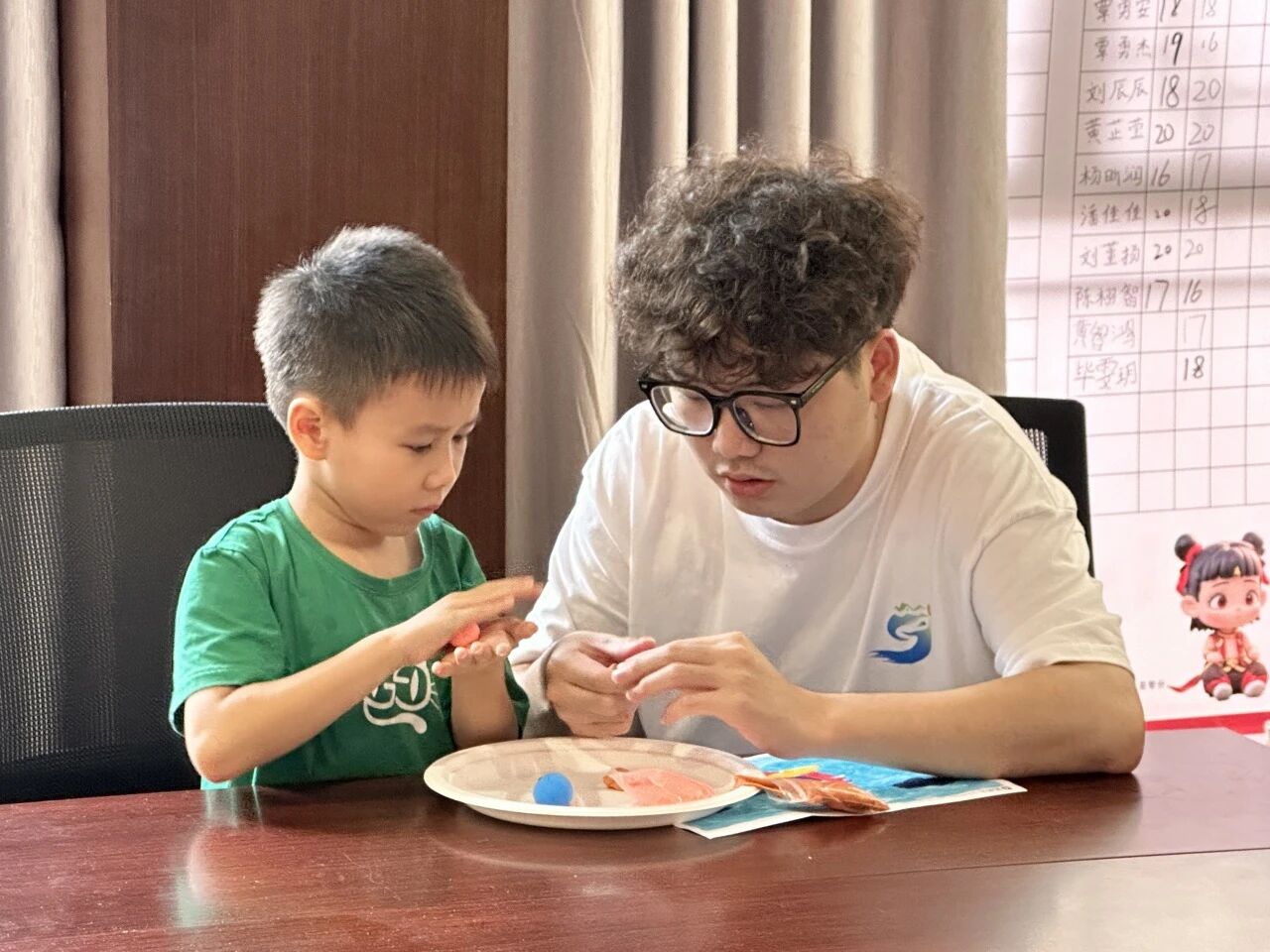 走进 DIY 粘土活动区域,仿佛踏入了一个五彩斑斓的创意世界。实践队队员们先向孩子们介绍超轻黏土的特性、使用技巧以及安全注意事项,随后实践队队员们为孩子们分配粘土和工具。