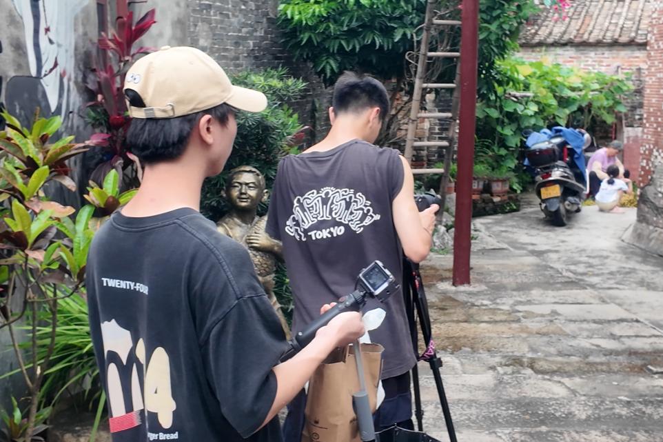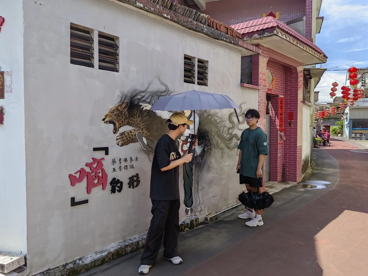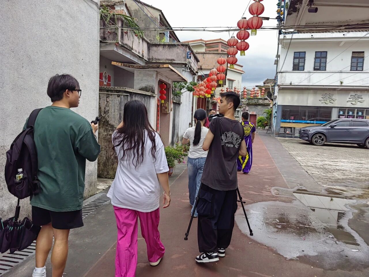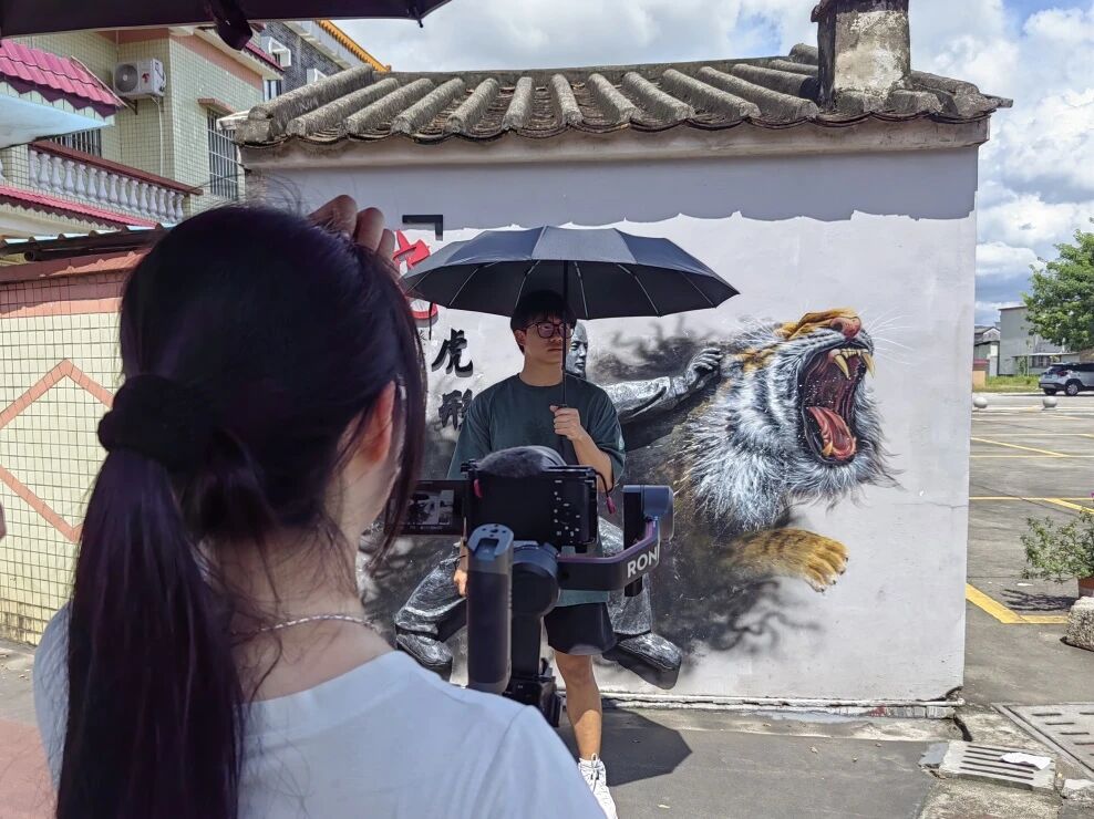 与此同时,陈锦浩、周嘉谦、杨彦三位成员全身心投入到墙画拍摄机位的专业勘选工作当中。他们严格遵循影像创作的高标准,反复调试拍摄设备的各项参数,不放过任何一处可能影响画面呈现效果的细节。他们以实际行动践行 “百千万工程” 对文化传播精细化、专业化的要求,致力于通过丰富的影像手段,让屏幕前的观众沉浸式体验蔡李佛文化的魅力,推动这一非遗文化在乡村的传承与发展以更生动直观的形式展现在大众面前。
