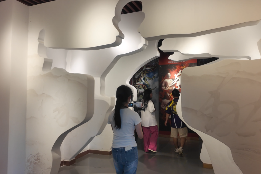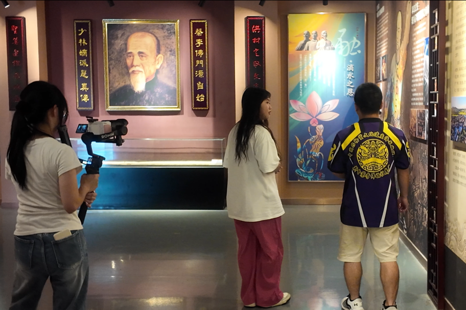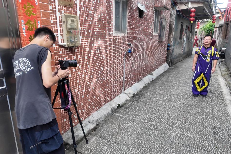 抵达京梅村后,突击队成员立刻投身工作。为让镜头精准捕捉非遗文化与乡村风貌的交融之美,进一步助力 “百千万工程” 中乡村特色文化资源的活化利用,成员们顶着烈日穿梭在古村街巷,逐一审视每一面绘有武术典故的墙画。从光影角度到构图层次,成员们反复调试机位、精心打磨镜头语言,力求通过影像生动展现非遗技艺在新时代乡村的传承活力,为 “百千万工程” 中的乡村文化建设留下珍贵的视觉档案。每一次奔走都承载着文化赋能的责任,每一次镜头的调试都饱含着助力非遗文化传承和传播的热忱,在精益求精的专业追求中,让 “百千万工程” 的文化传承蓝图在镜头下徐徐铺展。