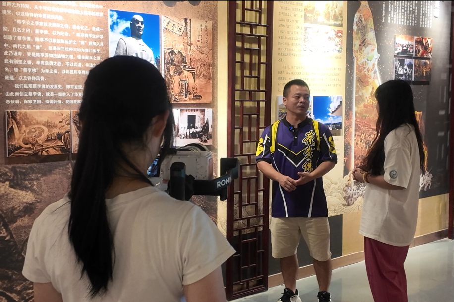 待蔡李佛始祖拳会李杰和师傅抵达现场后,突击队成员即刻按照既定方案投入工作,在 “百千万工程” 文化传承行动的框架下有序推进各项任务。由邓嘉欣、黄嘉帆、陆子俊、许凯欣四位成员组建的采访小组率先开展工作,他们围绕蔡李佛文化传承脉络、师傅投身蔡李佛艺术领域的生涯历程、乡村蔡李佛文化保护的实践经验,以及对依托蔡李佛文化推动乡土文化传承的深度思考等核心议题,展开了一场专业且深入的专题访谈。每一个精心构思的问题,都紧密关联着 “百千万工程” 中文化赋能乡村建设这一关键环节,力求通过与师傅的交流,深入挖掘蔡李佛文化在乡村扎根、发展的宝贵经验。