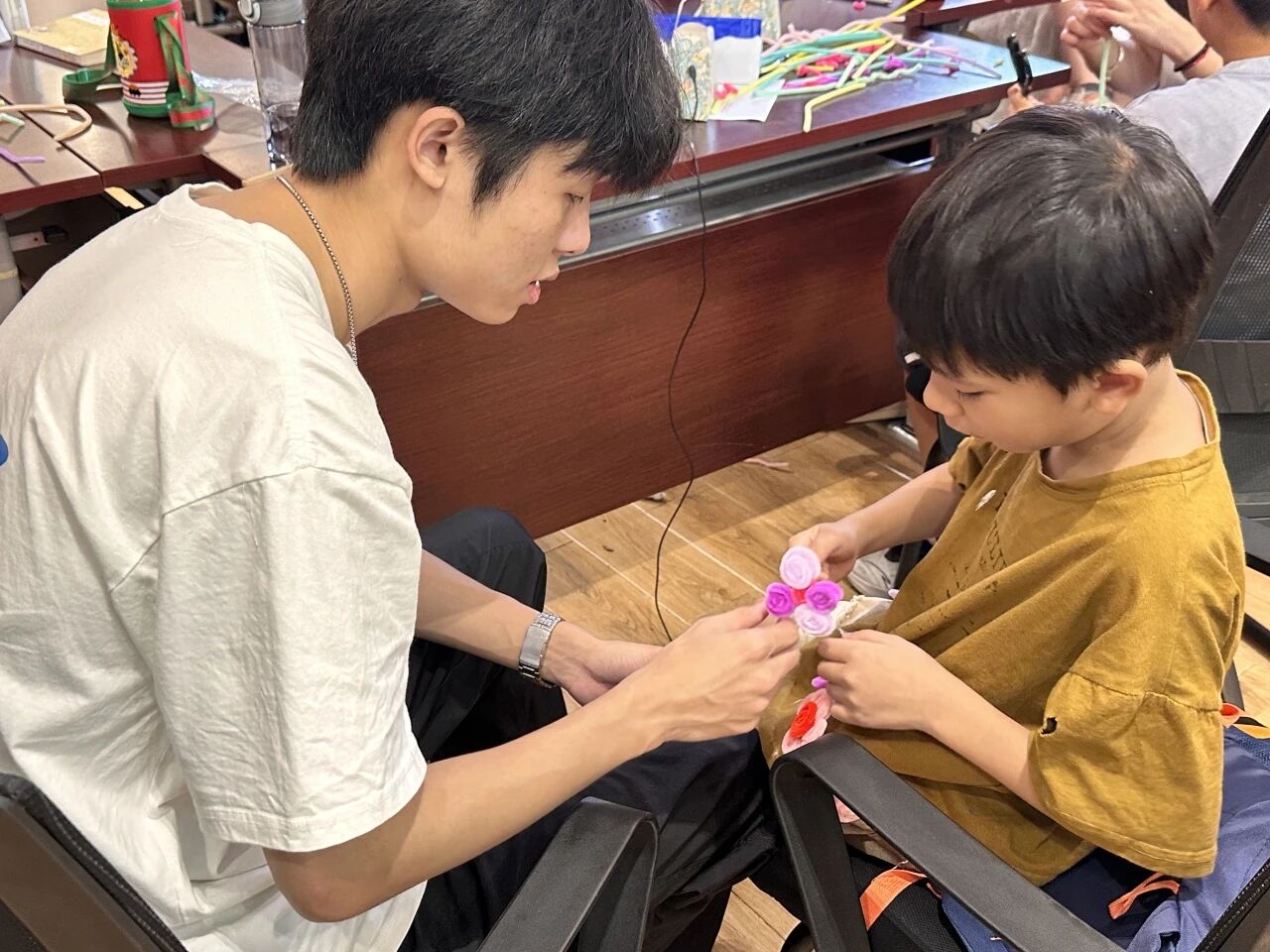 DIY 扭扭棒活动可谓是一场创意的盛宴。队员们和孩子们围坐在一起,手中的彩色扭扭棒仿佛被赋予了生命。大家充分发挥想象力,有的把扭扭棒变成了栩栩如生的小动物,憨态可掬的小熊、灵活可爱的小兔;有的则制作出了绚丽多彩的花朵,娇艳欲滴的玫瑰、清新淡雅的百合;还有的小朋友别出心裁,扭出了各种奇特的造型,有会飞的小火箭,有可爱的小房子。
