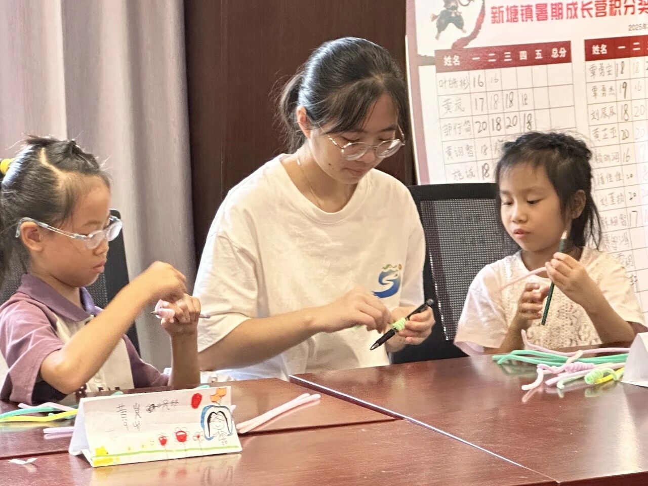 在这个过程中,队员们耐心地指导着孩子们,手把手地教他们如何弯折、缠绕扭扭棒。孩子们的脸上洋溢着专注的神情,当一个个精美的作品完成时,他们眼中闪烁着喜悦的光芒,自豪地向大家展示着自己的成果。整个活动现场充满了欢声笑语,不仅锻炼了孩子们的动手能力和创造力,也让队员们感受到了乡村孩子们纯真的快乐。